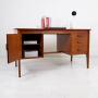 Handsome teak Gordon Russell twin pedestal desk presented in a wonderful condition. This one is a super piece of Mid Century furniture in well-toned teak and it goes without saying, fab build and design quality.Gordon Russell was one of Britain’s great furniture designers and the Gordon Russell Design Museum is worthy of a lengthy visit if you wish to know more about the company and how it shaped furniture post war in Great Britain.
