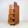 This 4 drawer oak filing cabinet is by British maker Advance Systems with the printed transfer still sitting proudly at the front. It possesses a good look with its design of the period including panelled sides.This would have started life in a 1930s office and no doubt formed a vital role of keeping files in order and documents safe. This one survives in good order with its original file stays in each drawer and brass pull handles and label holders in place to the front of each drawer. We of course have day to day wear and marks to the frame and top but the drawers are running smoothly and nothing is missing.