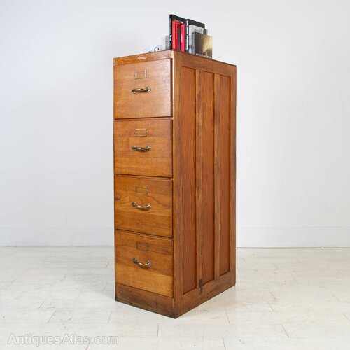 1930s Vintage Oak 4 Drawer Filing Cabinet