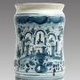 Description: Antique polychrome glazed majolica albarello vase from Naples, dating back to the mid-18th century.This large vase has a cylindrical shape tapered at the center and is decorated in a monochrome cobalt blue typical of Neapolitan tradition.