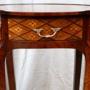 Description: Pair of antique Napoleon III bedside tables in fine exotic woods with bronze inserts, dating back to the late 19th century.The front features a small drawer highlighted by expertly chiseled gilded bronze handles.