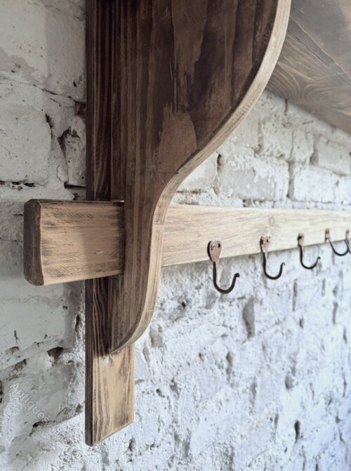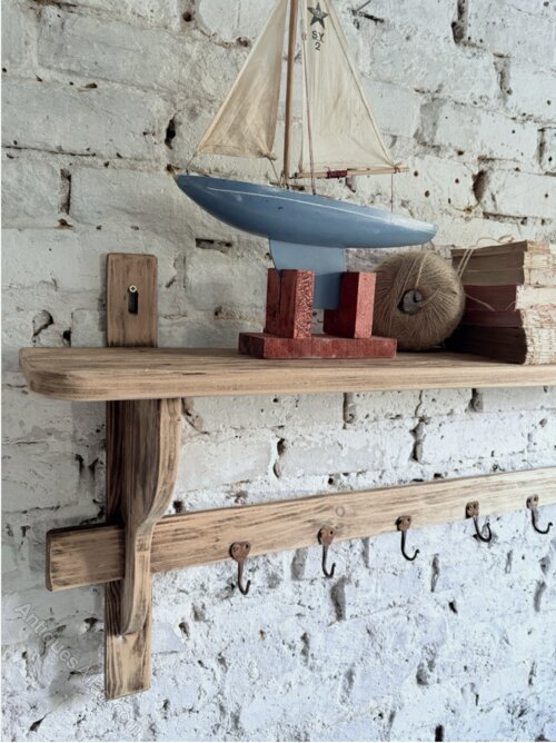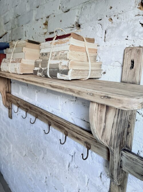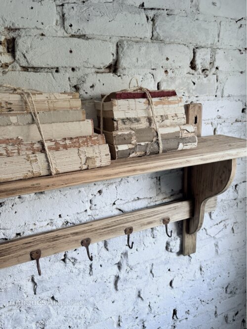 A good chunky solid timber French game shelf in a rustic natural pine.Solid timbers with historic woodworm holes on a preloved condition that has been treated for peace of mind. This is a fabulous decorative yet versatile piece for any country home.
