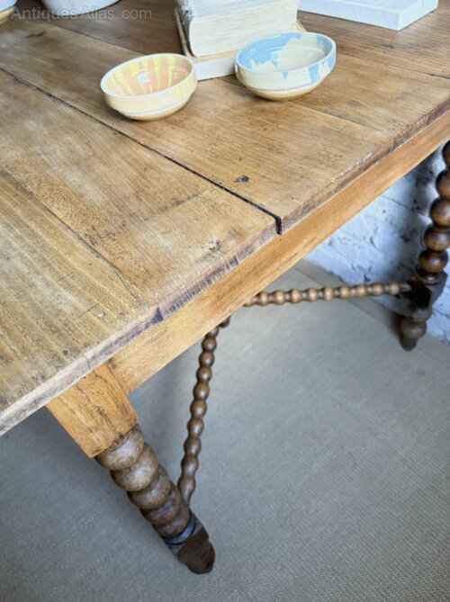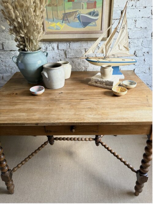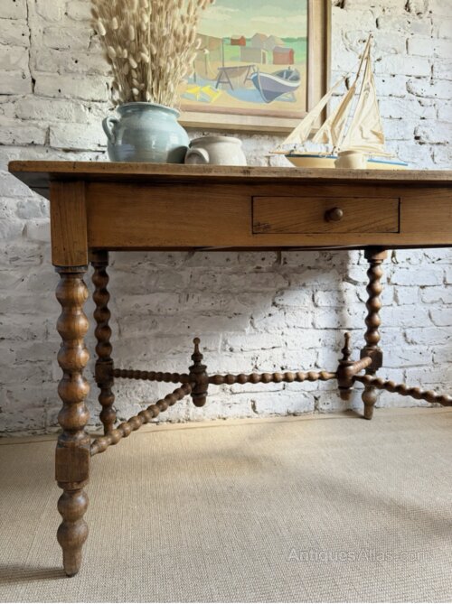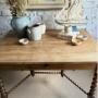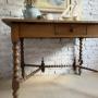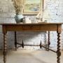 The most fabulous table / desk with stunning bobbin detail. This beautiful antique wonder is big enough for a small kitchen dining table or a wonderfully grand home office.Whatever you decide this one’s not to be missed ! Timeworn wear expected for its age with the usual marks and nibbles, with previous worm holes all newly treated for peace of mind.