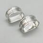 Each napkin ring is 4.6cm / 1.8ins across, 3.8cm / 1.5ins high and 1.9cm / 0.75ins deep. The pair together weigh in at a respectable 27.0g / 0.95oz of solid Sterling Silver.