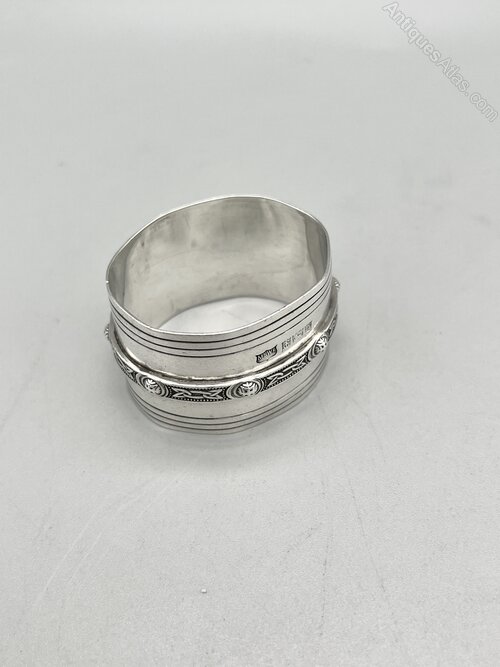 The oval napkin ring is 4.3cm / 1.7ins long, 3.6cm / 1.4ins wide and 2.6cm / 1in deep. It weighs in at a respectable 26.2g / 0.92oz of solid Sterling Silver.