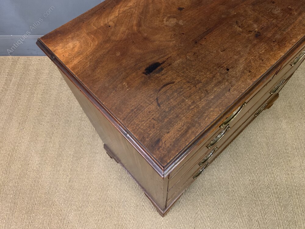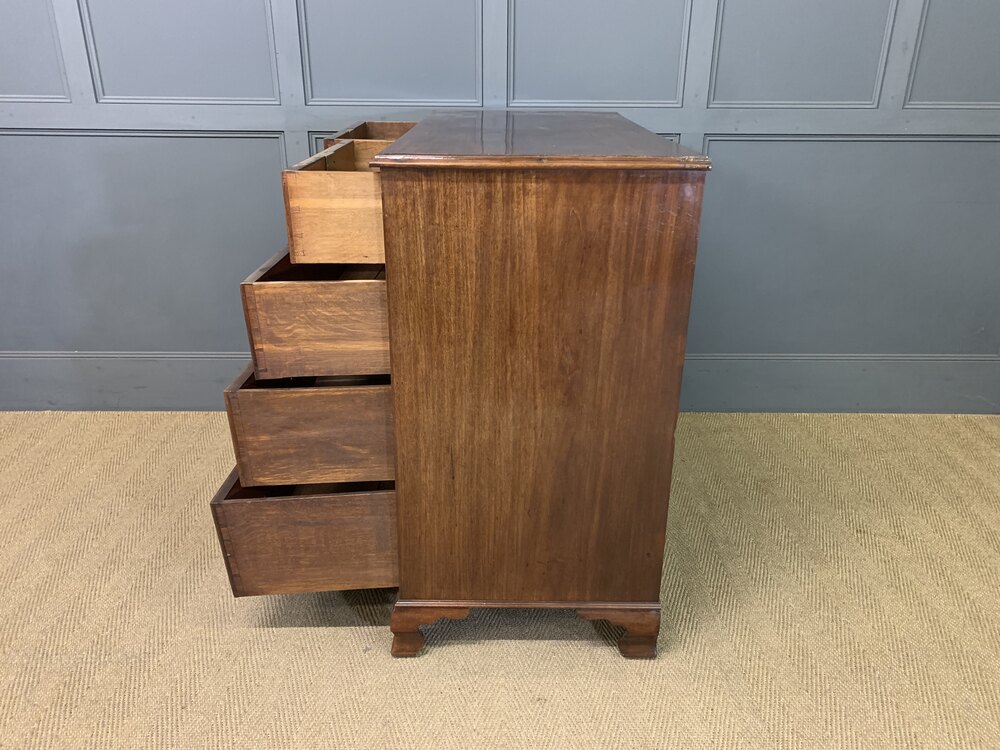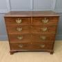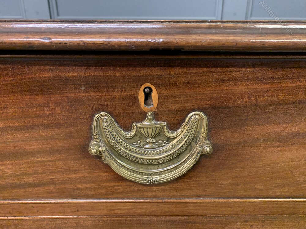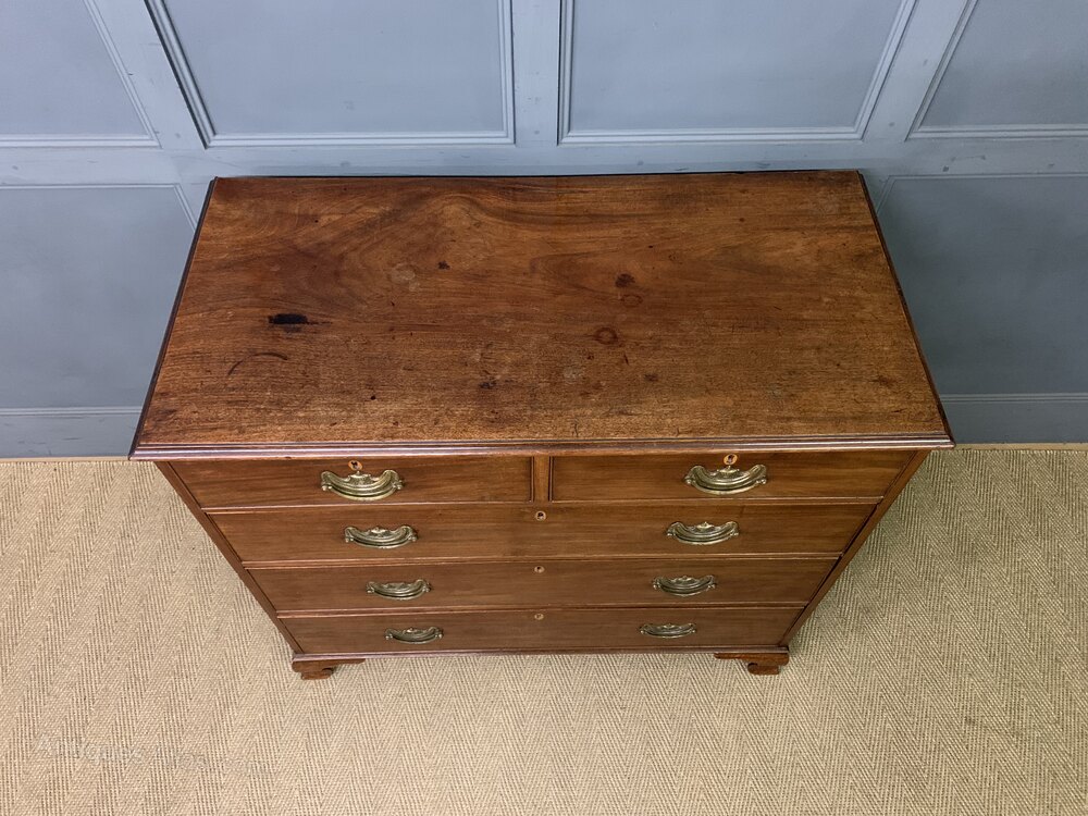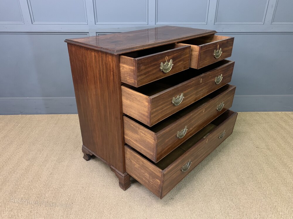 A charming George III period mahogany chest of drawers retaining its original superb solid brass handles. Well constructed in solid mahogany with solid oak drawer linings. With satinwood escutcheons. Retaining its original locks and bold solid brass handles. With an arrangement of 2 short over 3 long, graduated drawers. All standing on ogee bracket feet. Cleaned and waxed in our workshops and now offered for sale in very good original condition, with a warm colour and patina. With minor imperfections , adding character and befiting of a chest 250 years old.Dimensions: