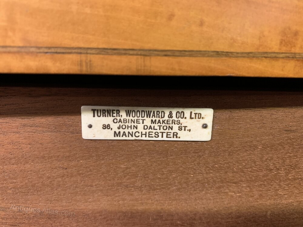 The company operated during a time when Manchester was a significant industrial and commercial hub, contributing to the city''s reputation for skilled manufacturing and design. Turner, Woodward & Co. Ltd. produced a variety of furniture items, including display cabinets, bookcases, and other decorative pieces, often featuring detailed carvings and high-quality materials.