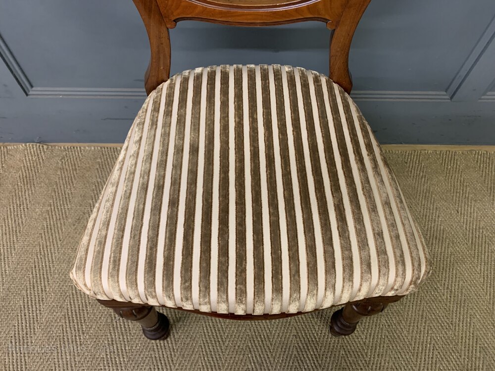 A very good set of Scottish mid-Victorian period dining chairs by Wylie & Lochhead of Glasgow. Of fine construction in solid mahogany with well upholstered seats. With balloon backs and turned front legs. Each chair bearing the makers stamp to the underside. They are of generous proportions, strong and sturdy. Offered for sale in very good original condition, with a good colour and patina, ready to go straight into the home.Dimensions: