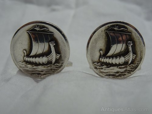 Vintage Georg Jensen Silver Viking Ship Cufflinks.