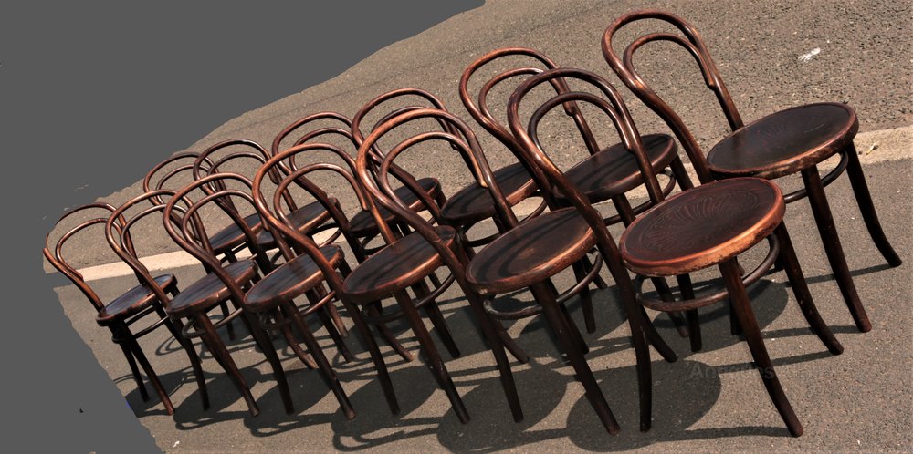 This is a set of 12 typical double hoop type, round plywood seats.Good condition no split hoops, seats in good used condition.