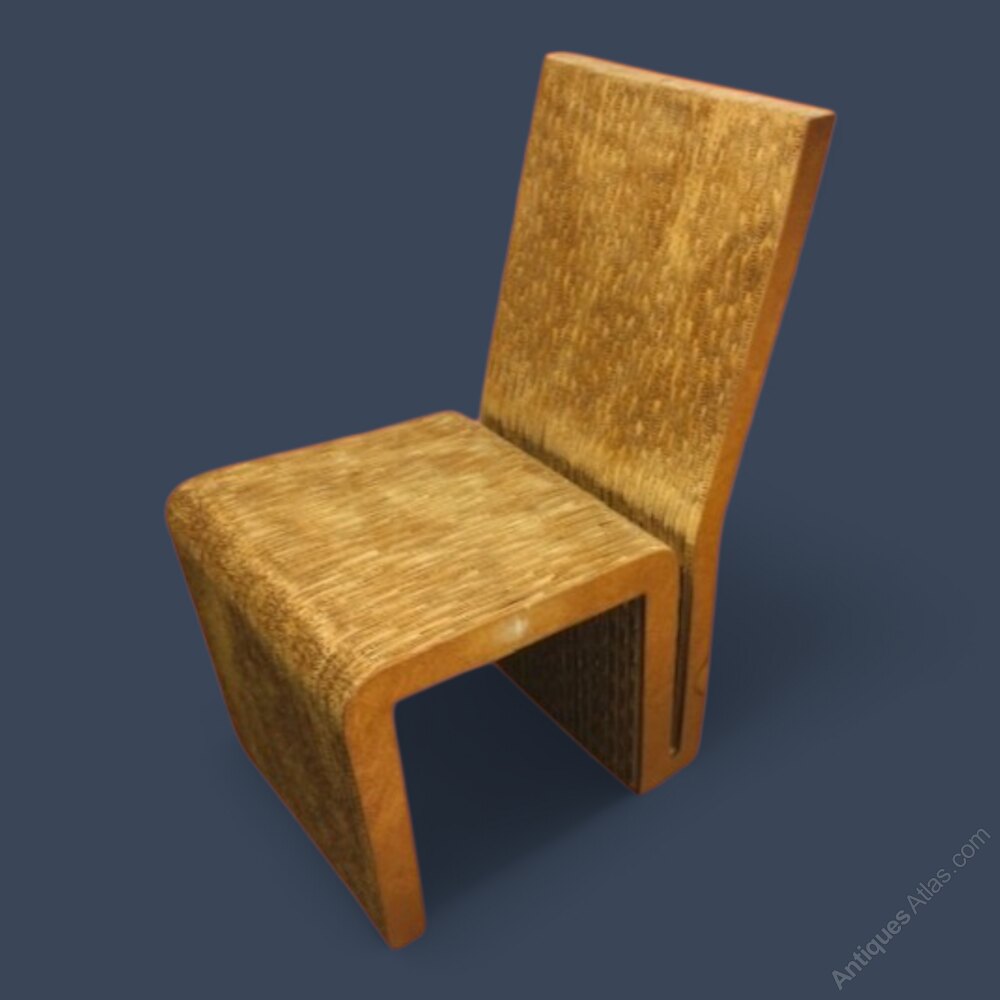 Examples of Frank Gehry's "Easy Edges" chairs can be found in the Metropolitan Museum in New York. This chair is therefore more akin to a piece of sculpture or an art object given its wonderful design provenance. Perfect as a statement design piece in a contemporary interior or as a 'clash piece' to add edge/contrast to a period setting!