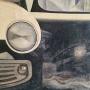 We love the brides stunning wedding dress and platform shoes, the striking red and cream awning and the lovely 1980s Mini Classic and the mystery surrounding this fantastic statement work of art!