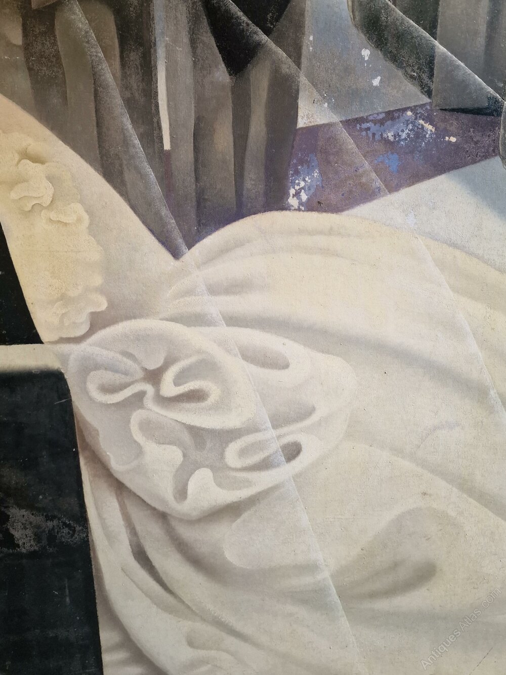 In GeneralA magnificent, huge statement original framed oil painting, 'The Bride and the Mourners' dated 1980 by the leading artist Julia Heseltine (1938 - 2023) and exhibited at the Royal Academy Summer Exhibition in 1980. This show stopper original oil painting reflects her signature surreal and intensely dreamlike style and her exciting technique for compositional mysterious vignettes where the viewer's imagination can run riot exploring all the likely scenarios that her wonderful paintings reveal.