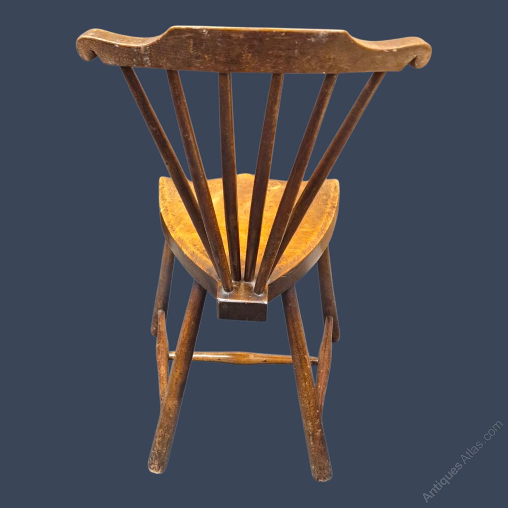In GeneralA very charming, stylish and neat late 19th Century/early 20th Century elm and beech Arts and Crafts fan back chair circa 1910. It is distinctively styled and aesthetically very pleasing having a shaped cresting rail and the partially overlapping spindles individual to this design of chair. It is supported with an H-stretcher.