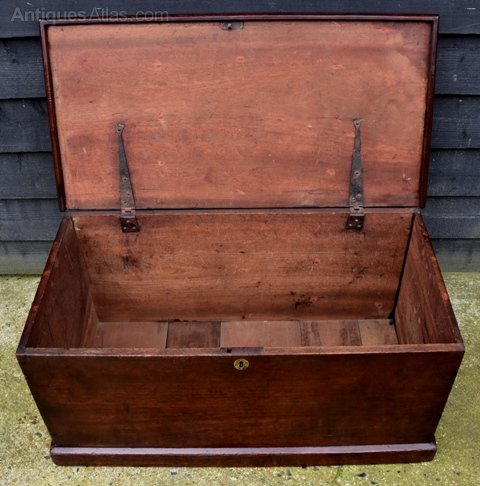 Victorian Mahogany Box/ Chest, Circa 1850. Original iron handles, lock & strap hinges. Chunky dovetailed joints to external corners. More unusual to find a box of this type in mahogany (usually pine or elm). Even patination. Excellent condition.Width 33 1/2" (85.1cm)