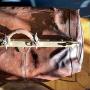 This example is deeply patinated, yet still in usable condition, with replaced zips and working locking rail across the opening.