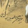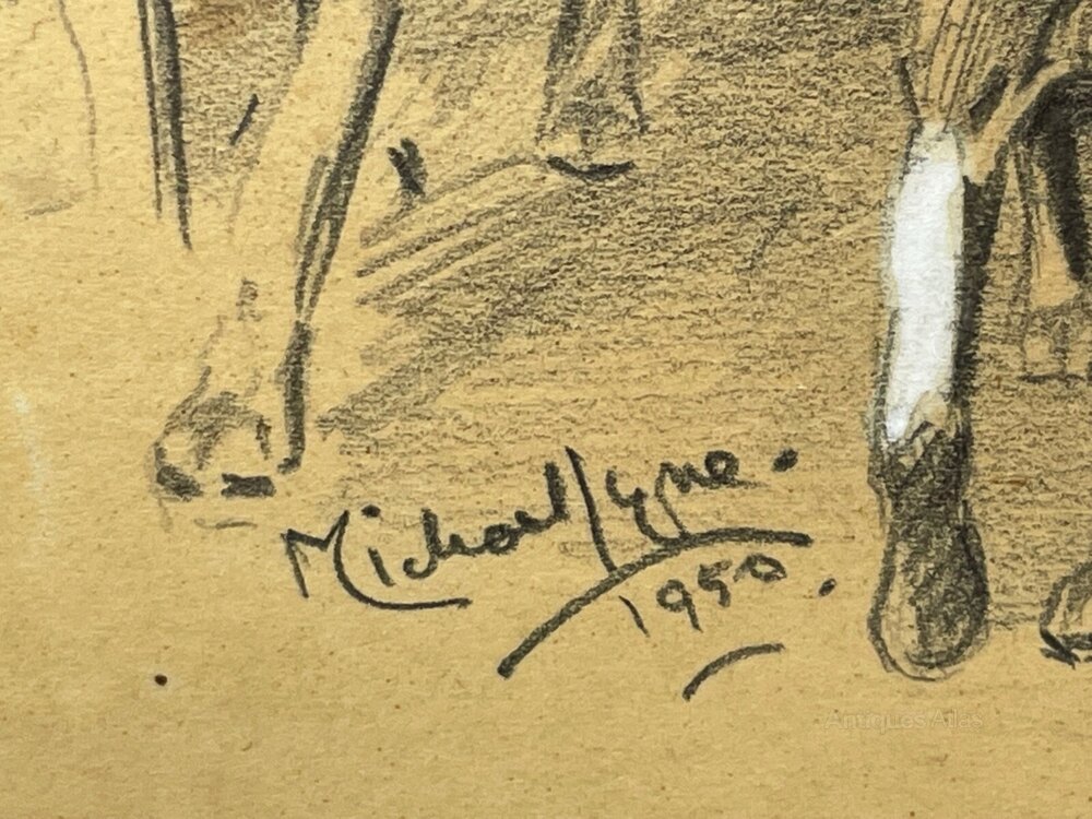 Michael Lyne (1912–1989), born in Herefordshire, was a well-known British sporting artist and author, celebrated for foxhunting and rural life subjects.