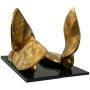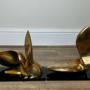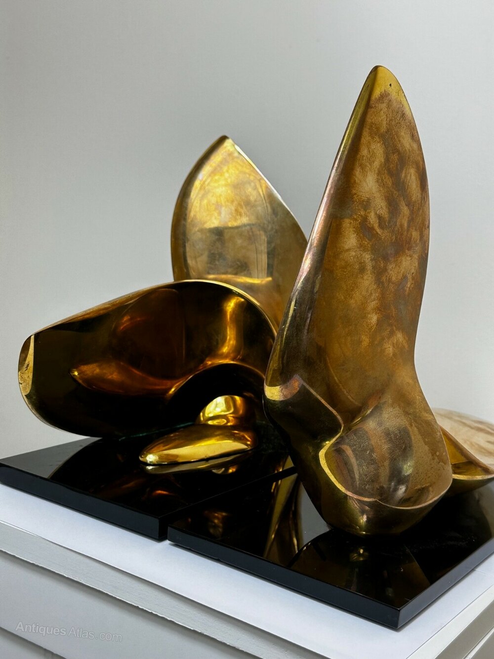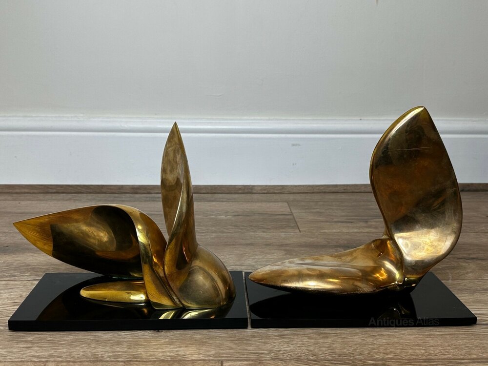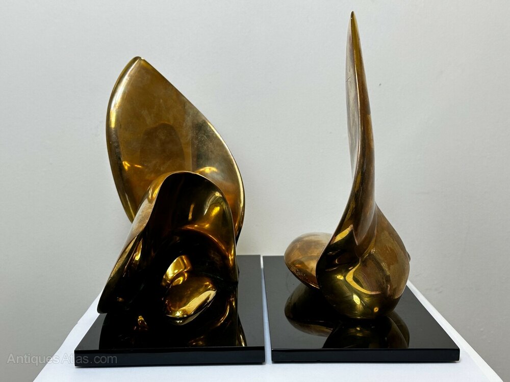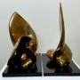 This pair presents an elegant, abstracted treatment of the swan form. Each bronze displays fluid organic curvature and a luminous gilt finish that interacts with light. The works are mounted on low black acrylic plinths for contemporary presentation. One piece is signed and numbered 18/95, confirming its limited edition status. The pair balances minimalist abstraction with tactile bronze warmth and a confident sculptural silhouette.