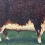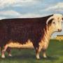 The Hereford breed, originating in Herefordshire in the 18th century, became internationally renowned for beef production. Recognisable by their white faces and rich red coats, Herefords were frequently commemorated in painted portraits to record pedigree and estate prestige.