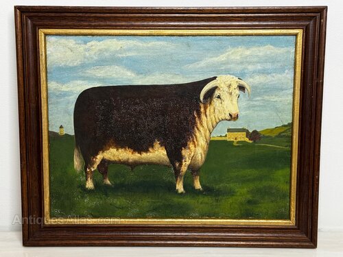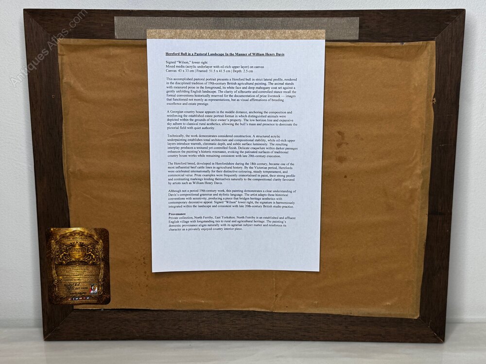 Hereford Bull Oil Painting in the Manner of William Henry Davis – English Agricultural SchoolItem Description