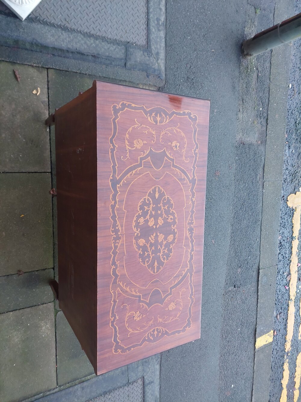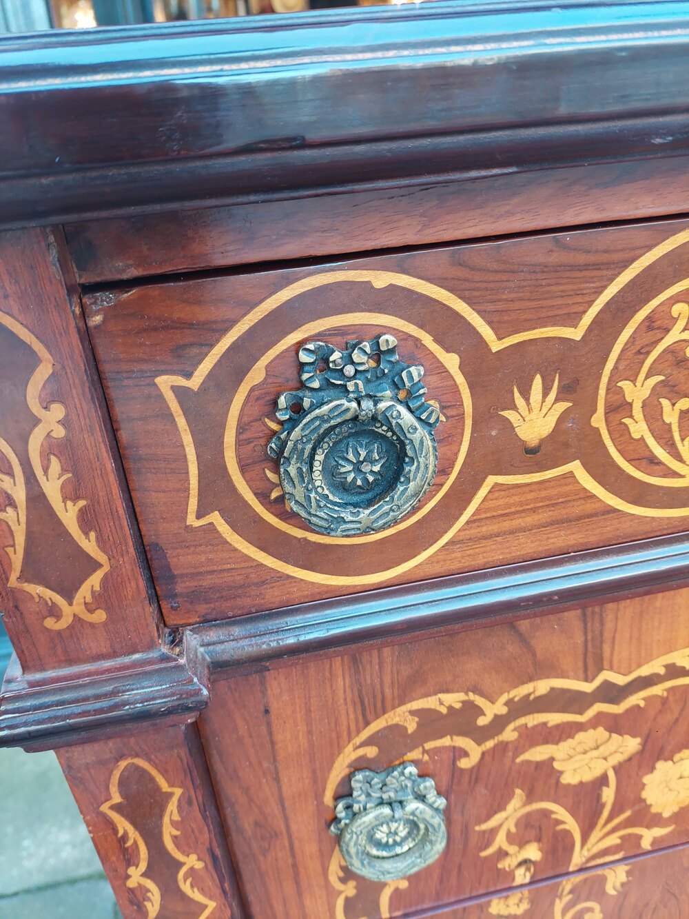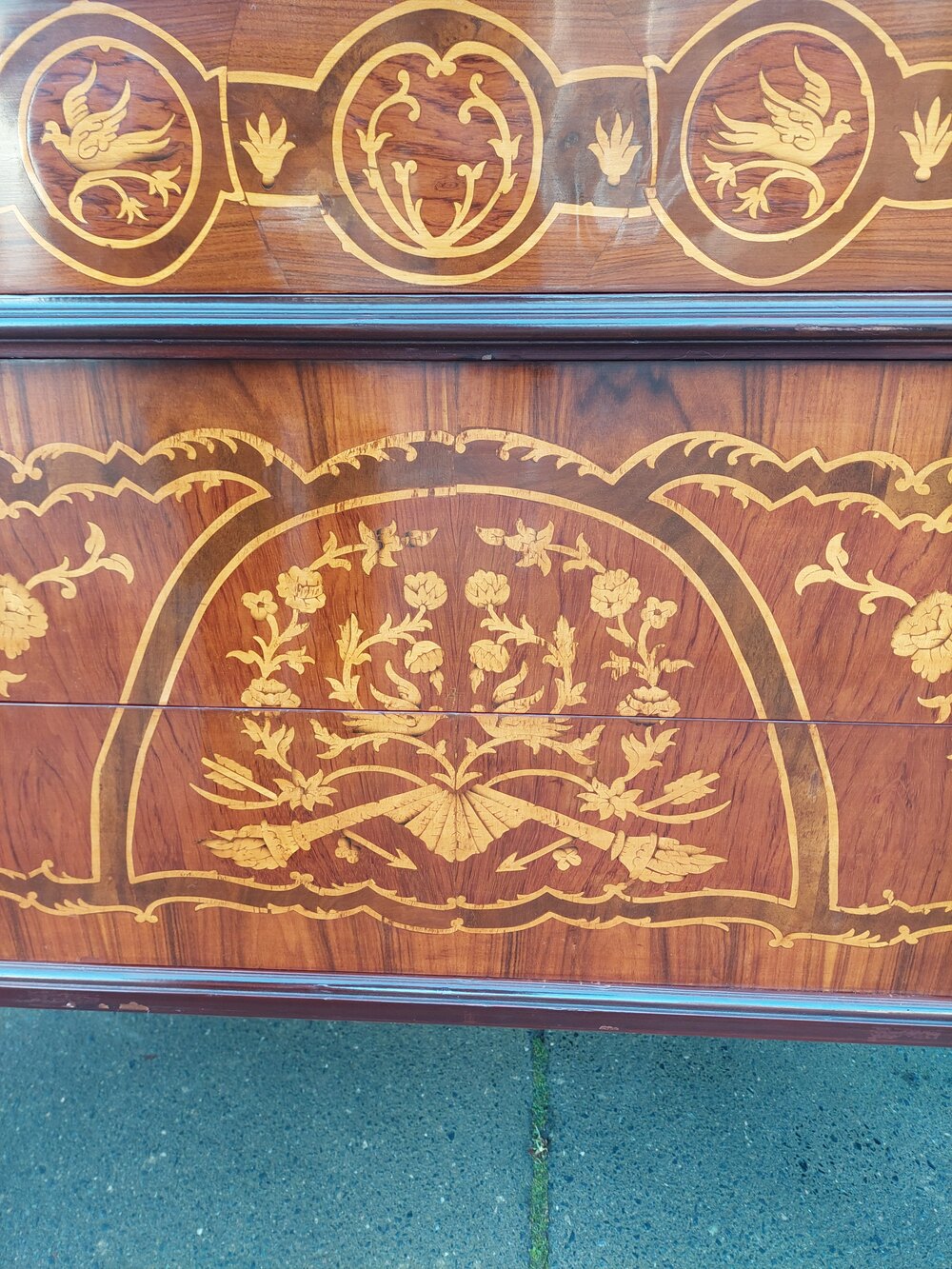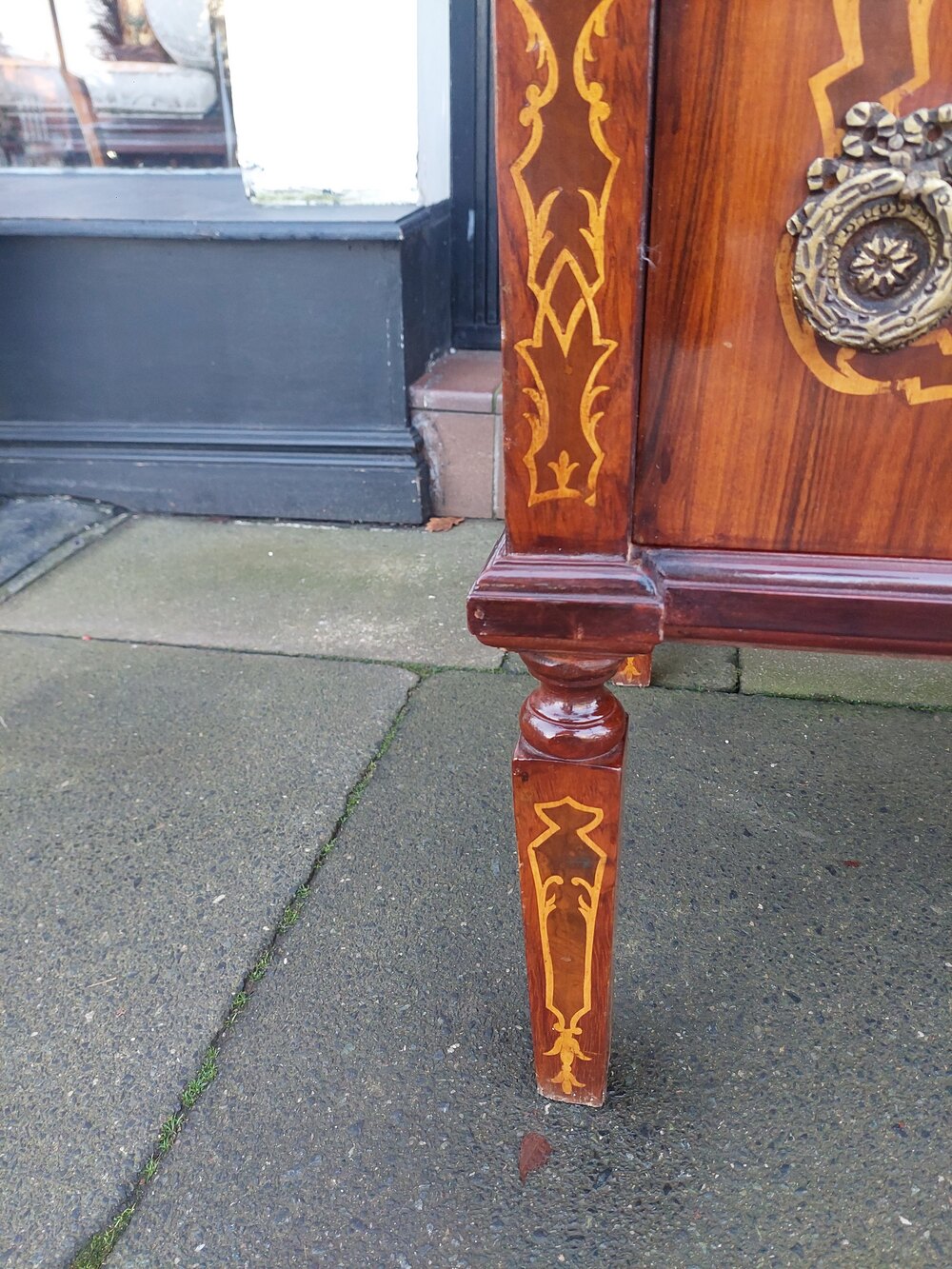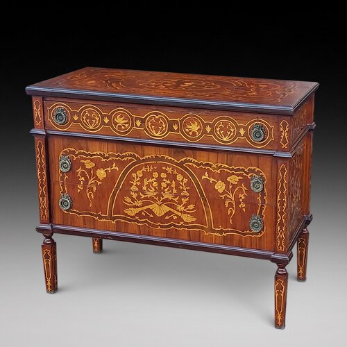Italian Mahogany and Marquetry Inlaid Chest having Ormolu Handles and supported on Square Tapered LegsDateEarly 17th Century