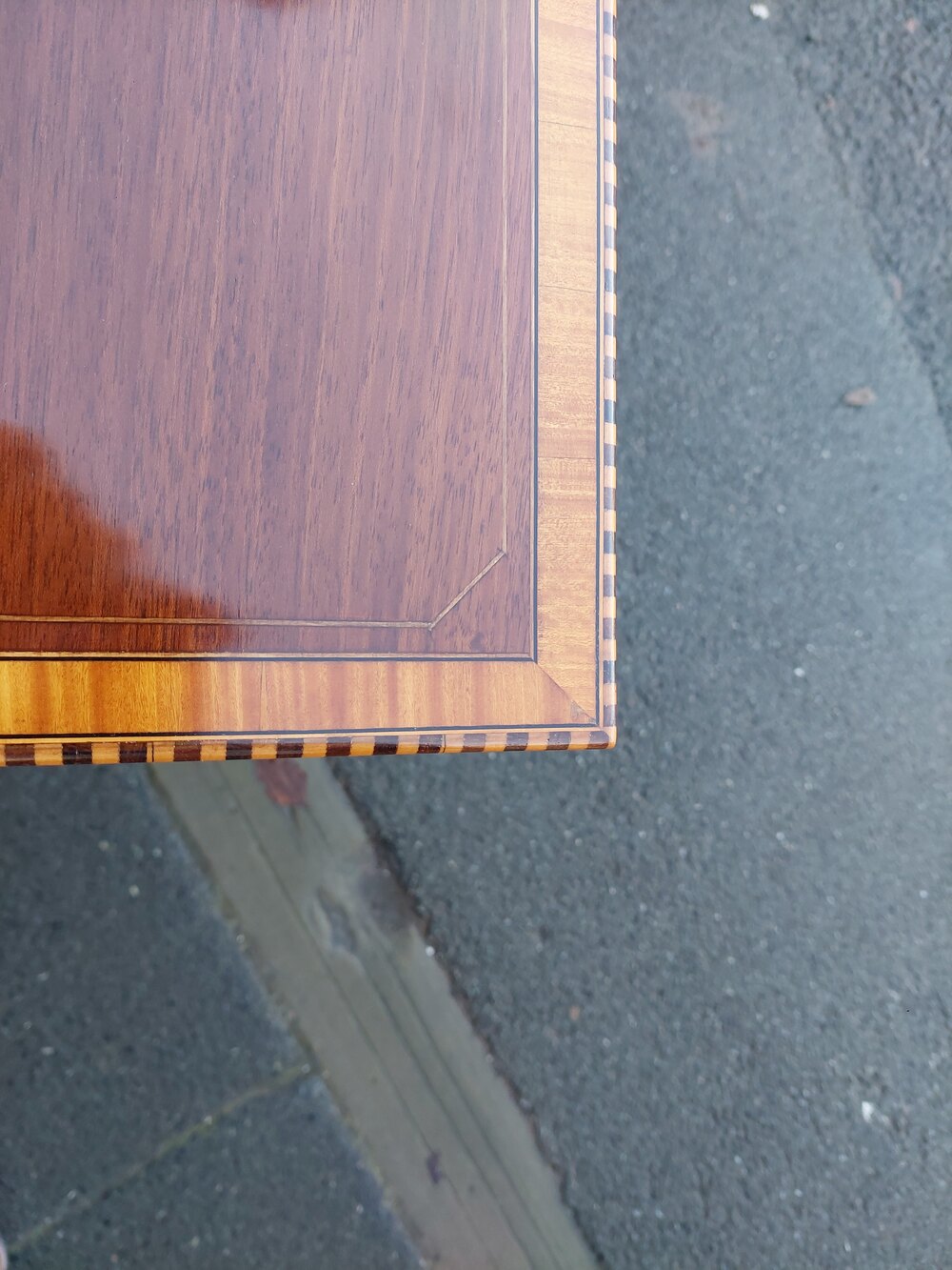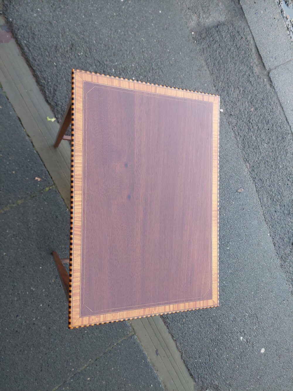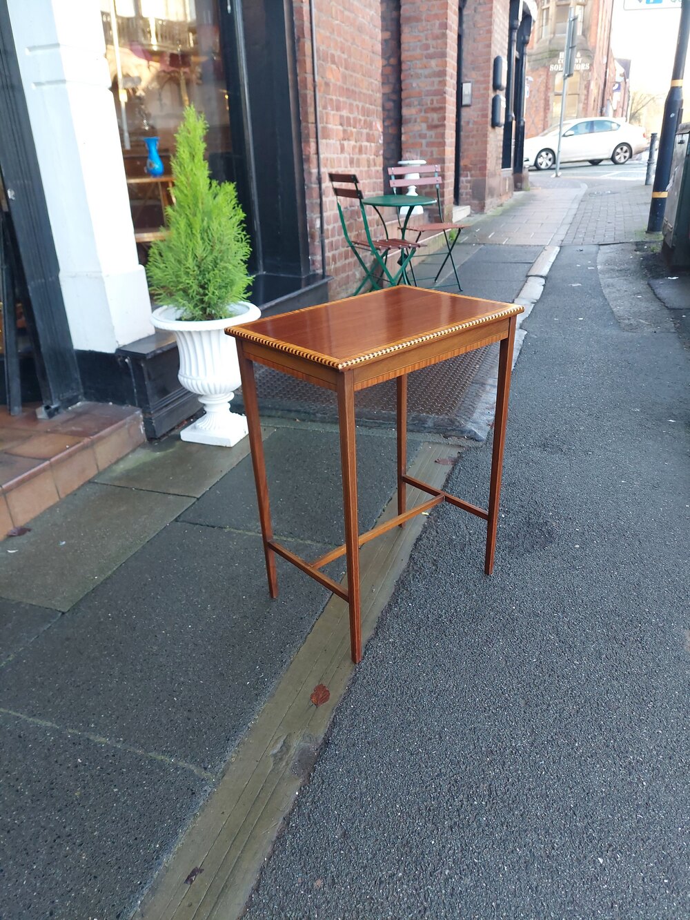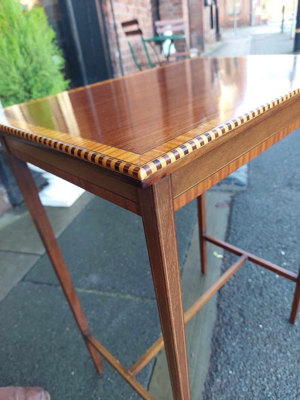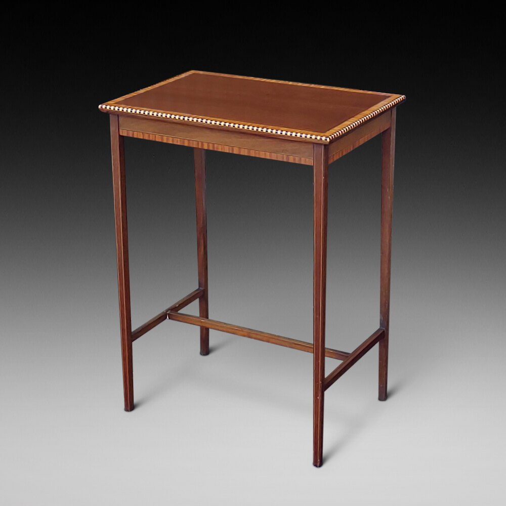 Edwardian Inlaid Mahogany Occasional Table, with rectangular top and raised on square tapering legs - 21"w x 15.5"d x 27"hDateEdwardian