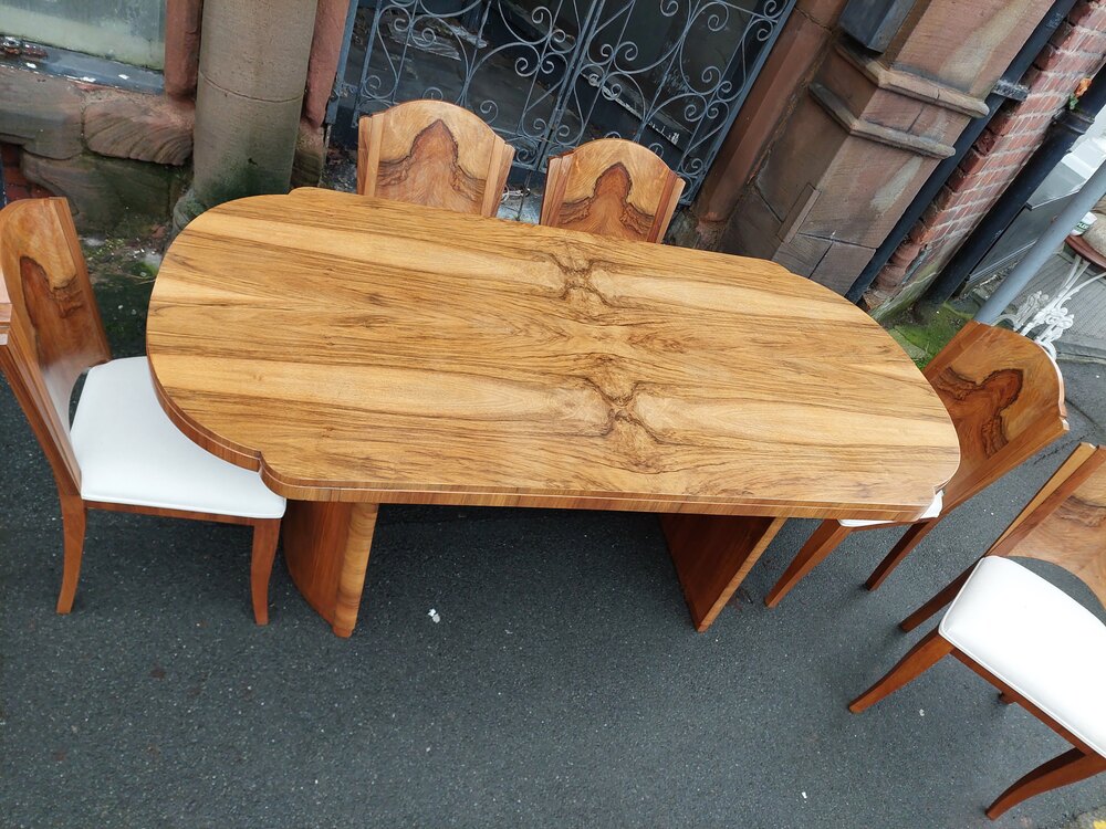 Art Deco Black Walnut Dining Suite to Seat Six