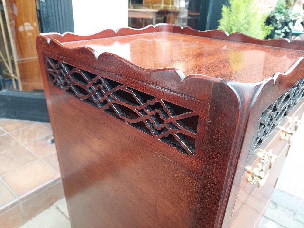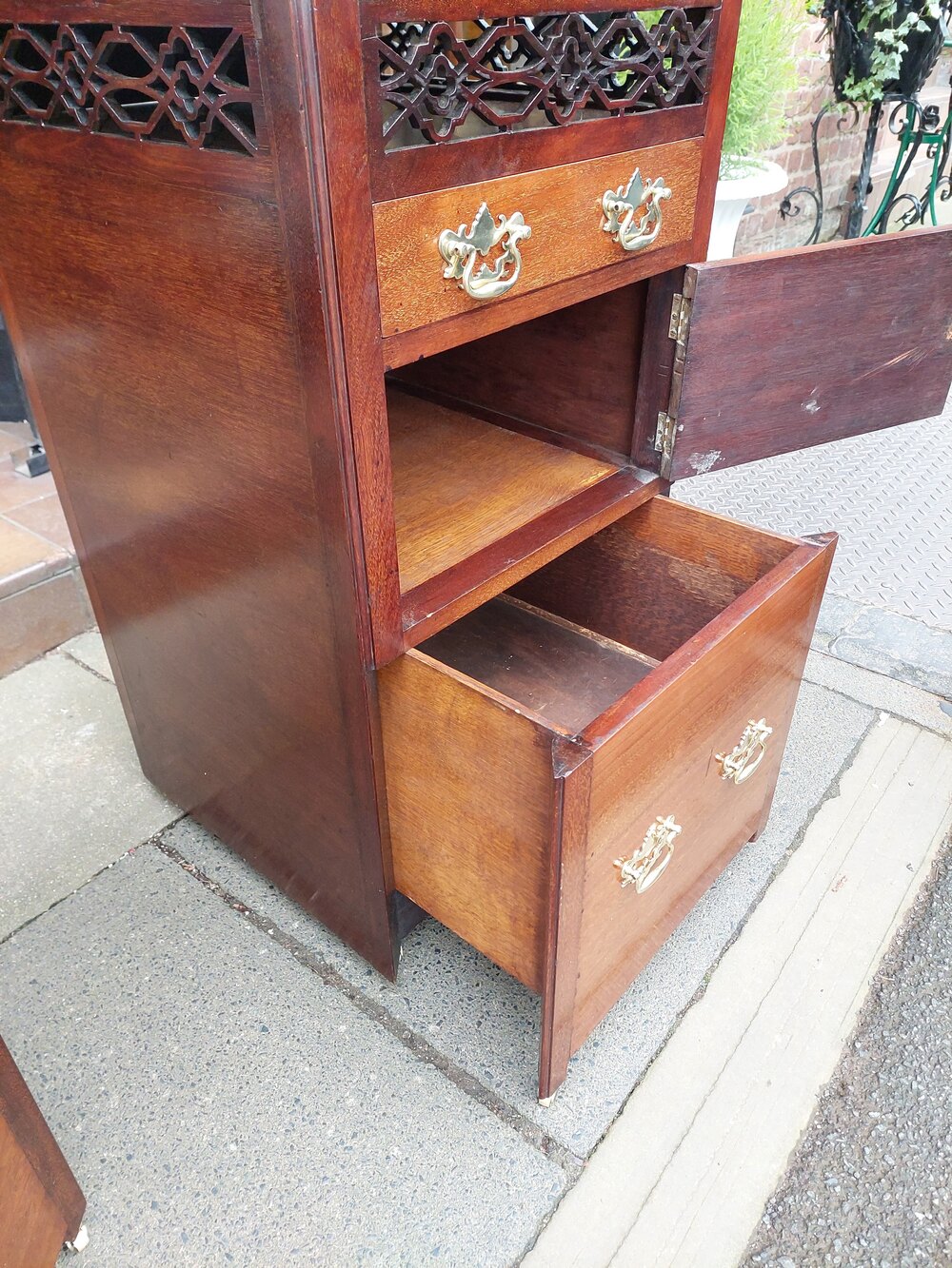 Pair of Early 19thC Nightstands stamped Gillows - with relined pottie drawers on brass castors, single cupboard below fretwork gallery and hidden pot-puri compartment - 17"w x 18"d x 33.5"hDateGeorge III