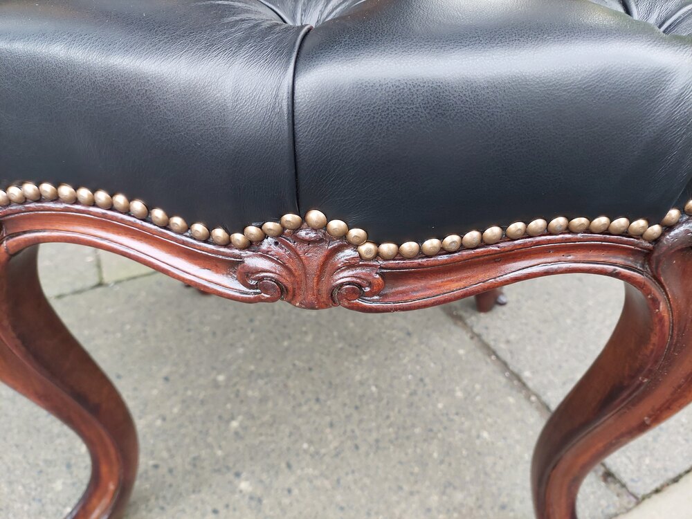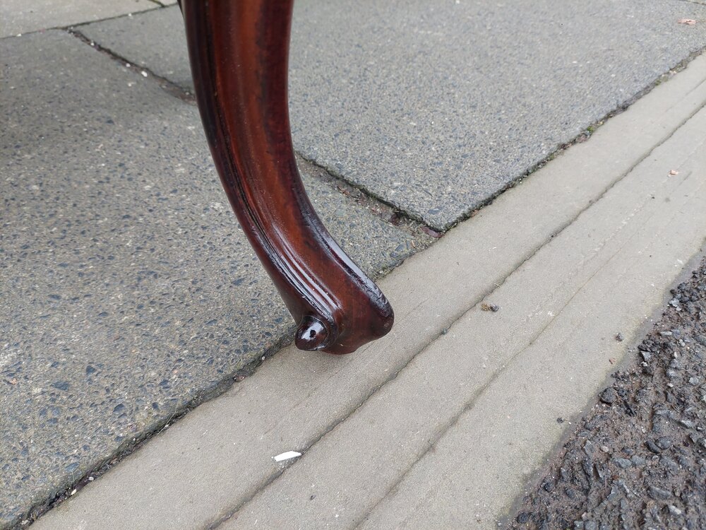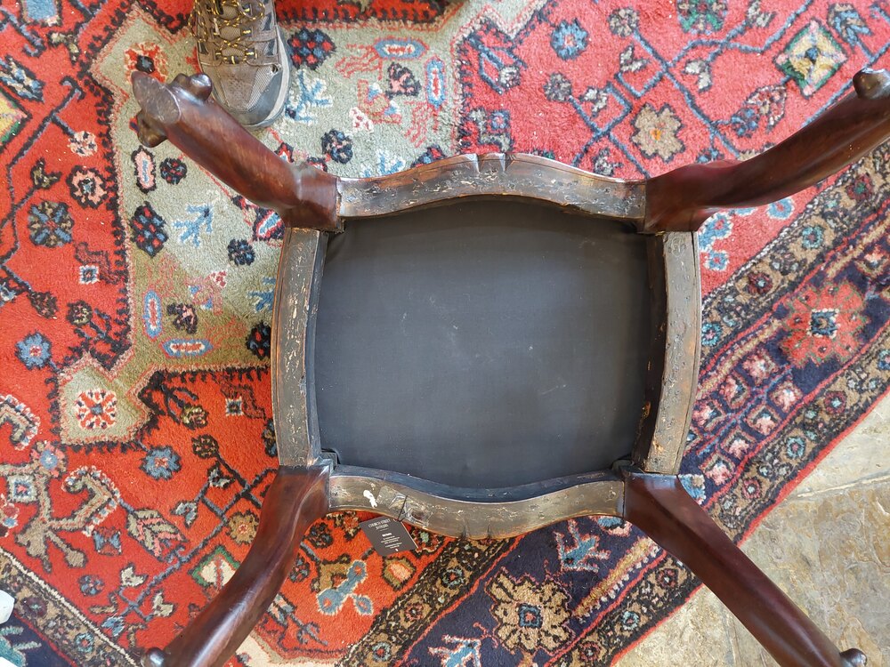 Victorian mahogany stool, the rectangular tapestry seat with a tasselled edge over a serpentine shaped apron, raised on cabriole legs with carved scrolling toes - 20"w x 17"d x 19"hDateMid Victorian