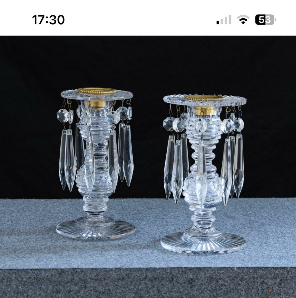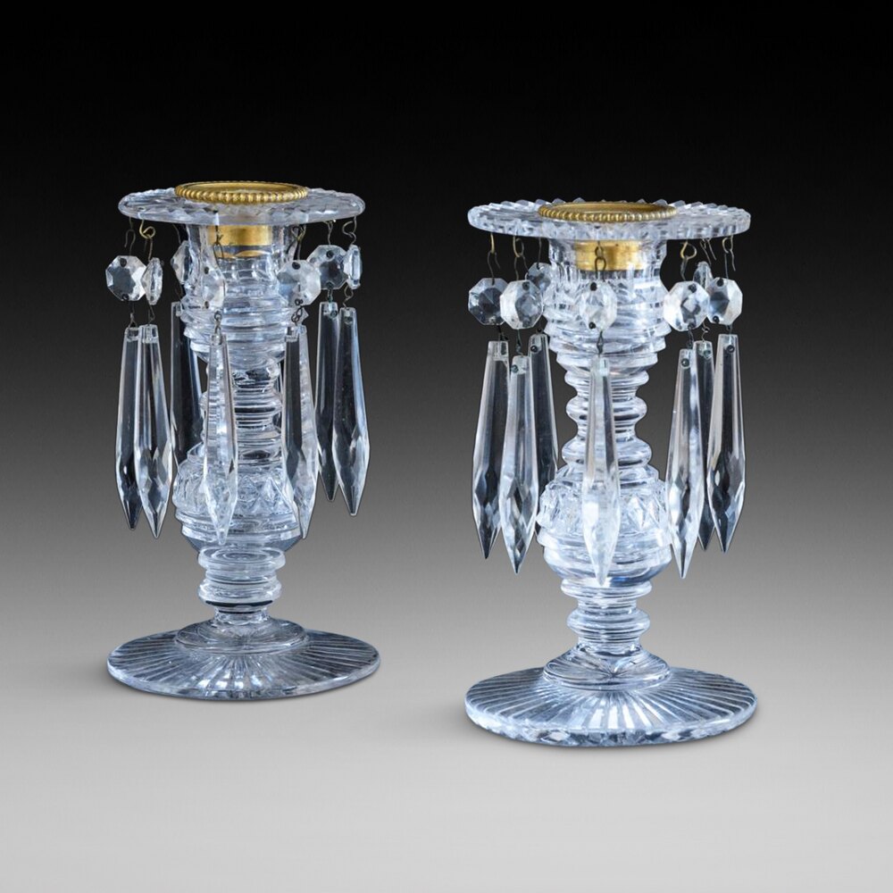 Pair of Victorian Cut Glass and Crystal Drop Lustres with Ormalu Cup Drip Trays - 2" diam x 7"hDateVictorian