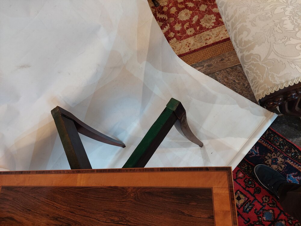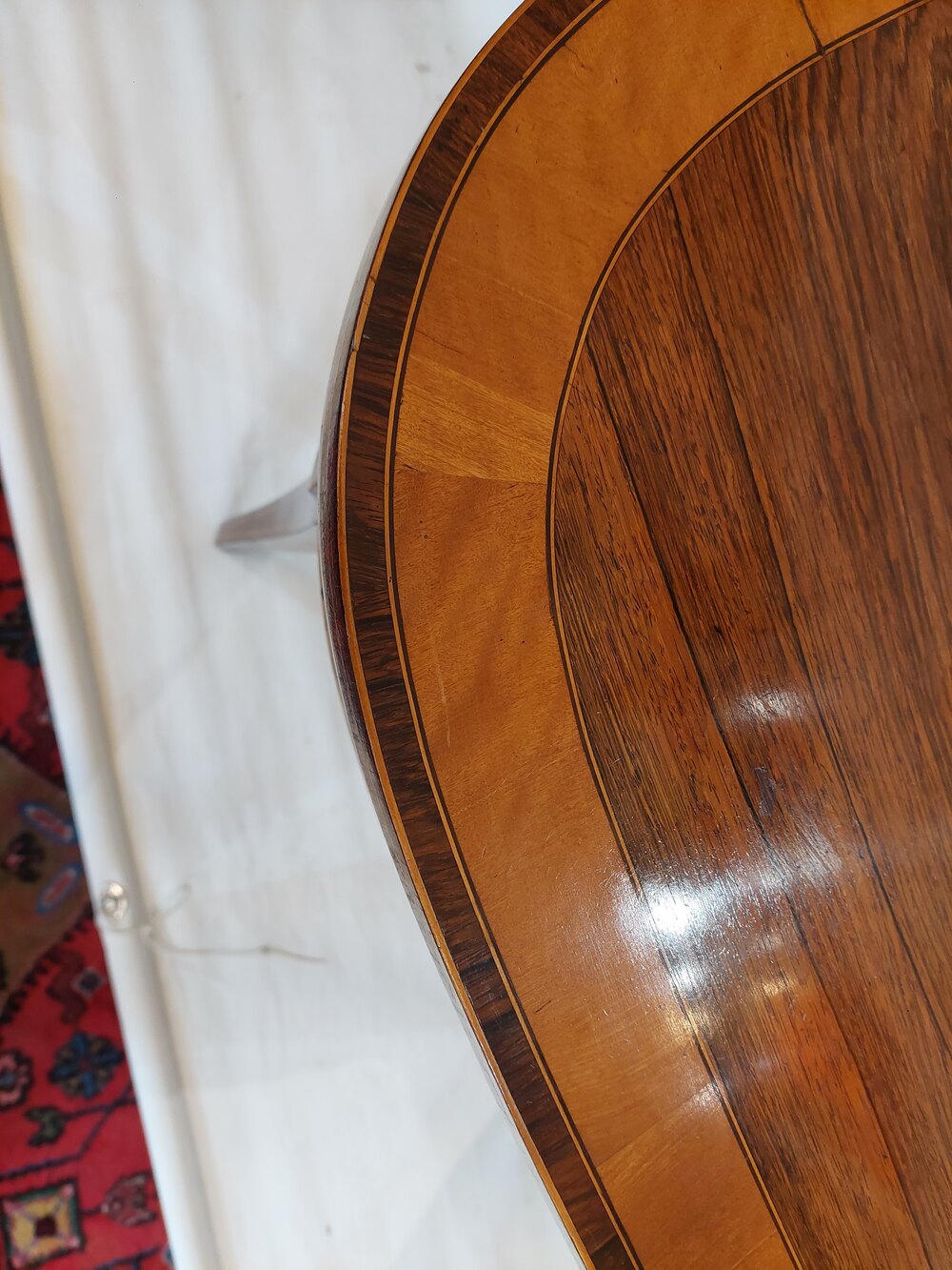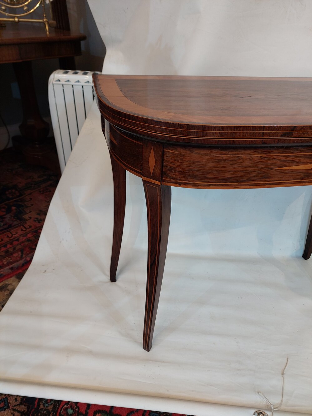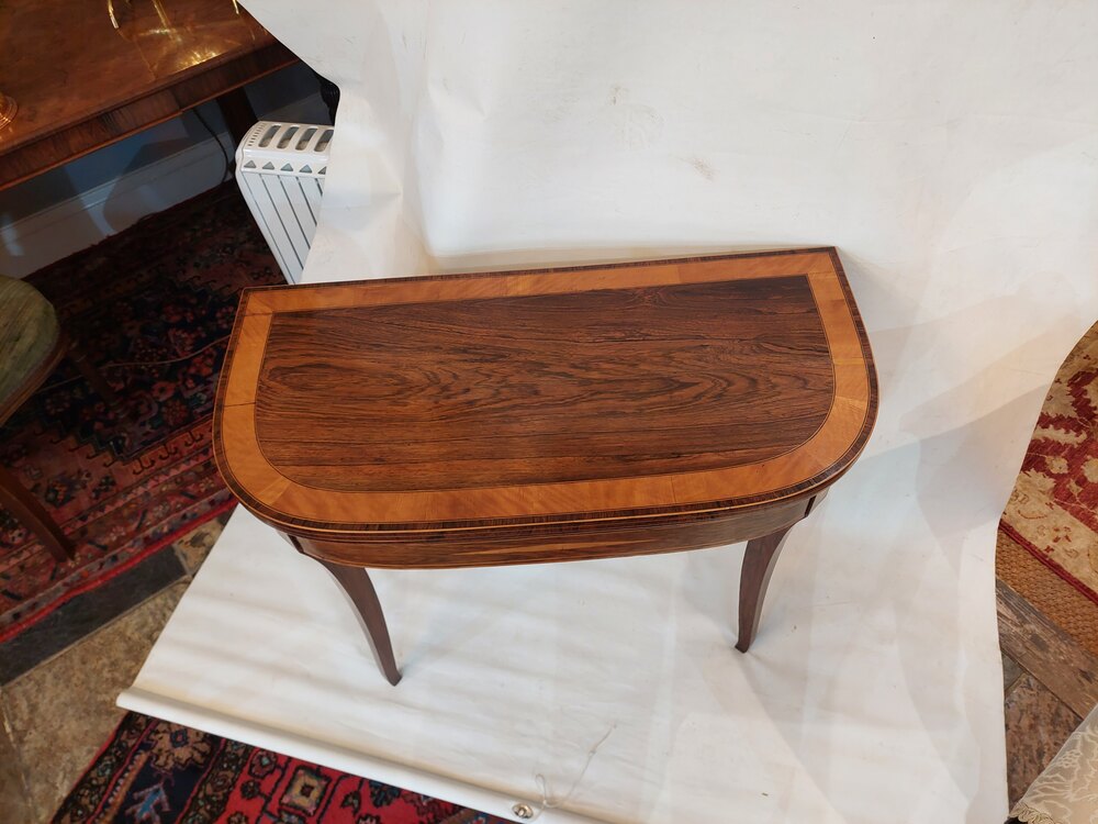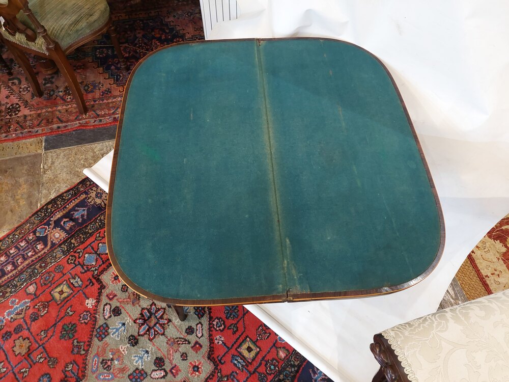 Early 19thC Regency Rosewood & Satinwood Inlaid Card Table, the fold over gaming top supported on shaped tapering legs - 36"w x 18"d x 29"h - 36" x 36" x 28.5"h open.DateGeorge III