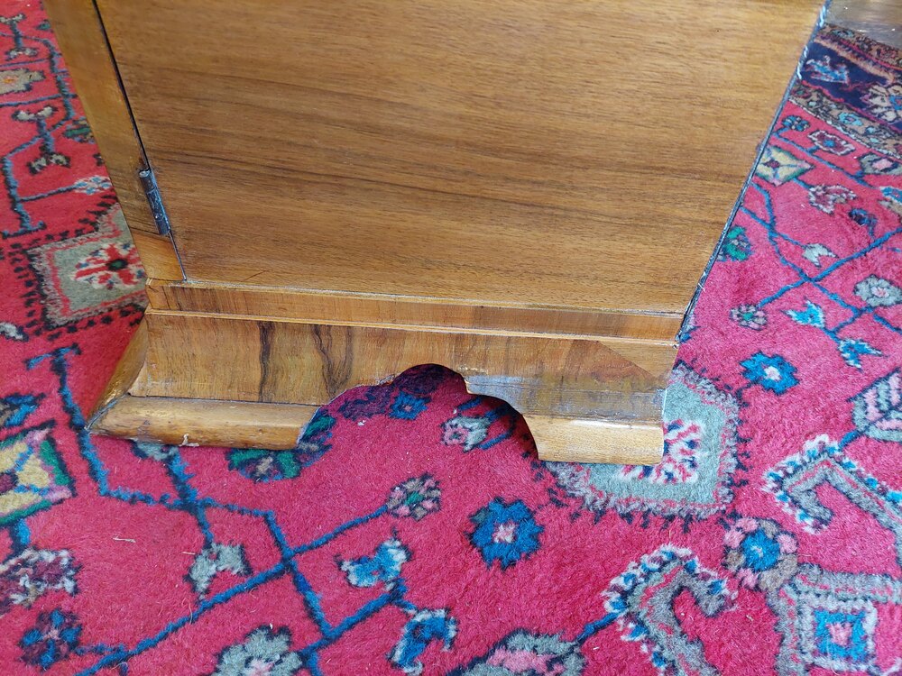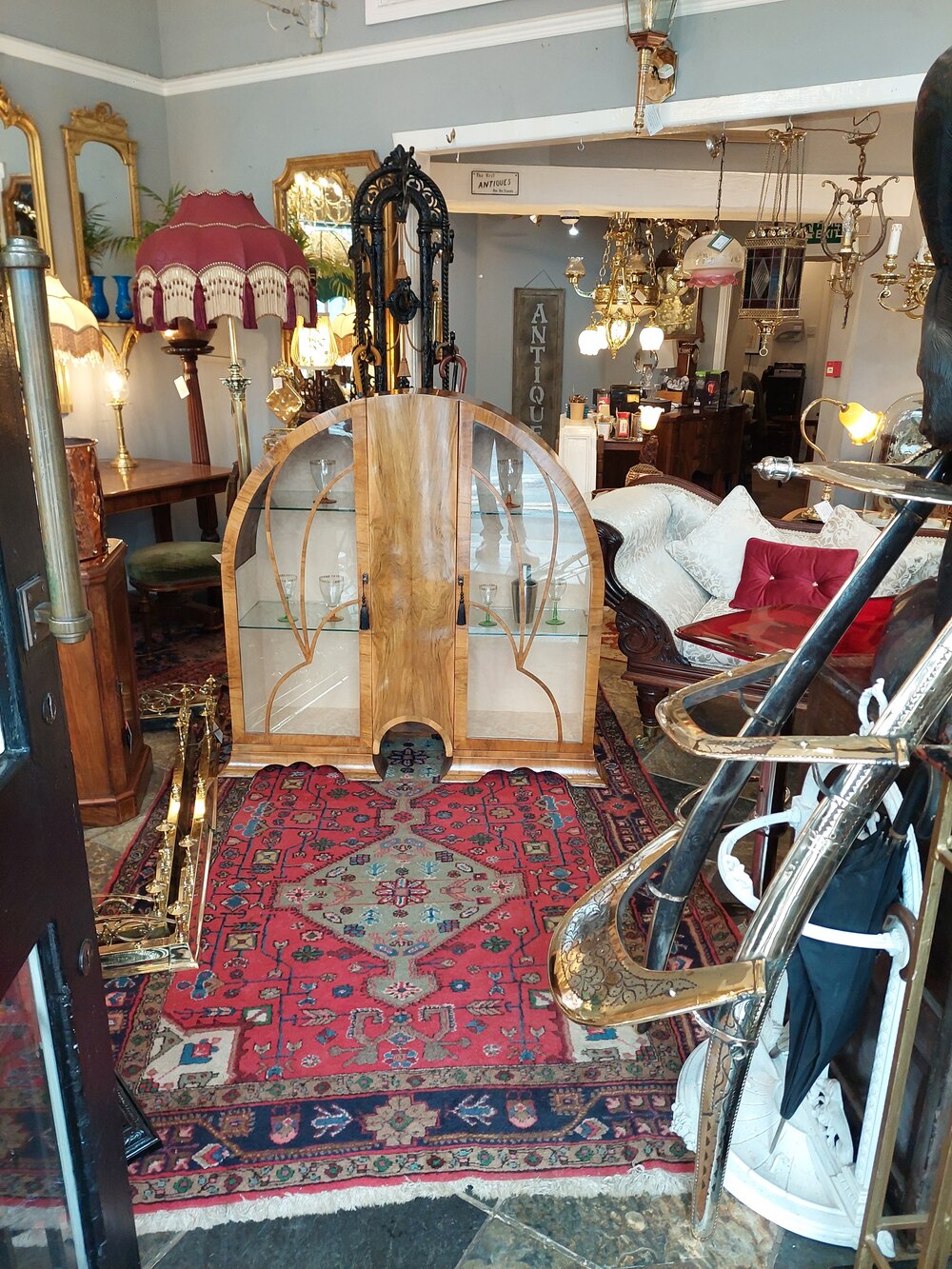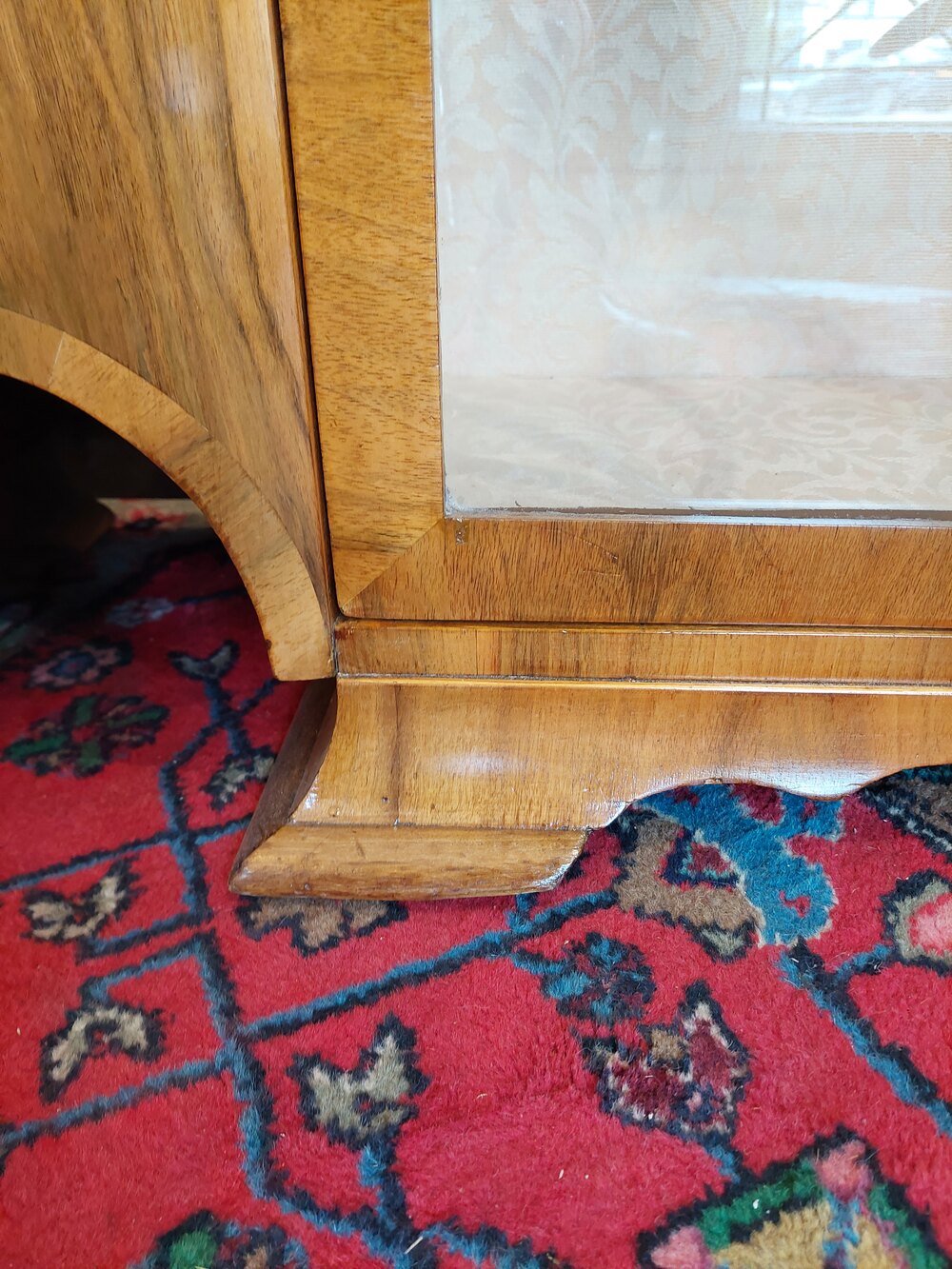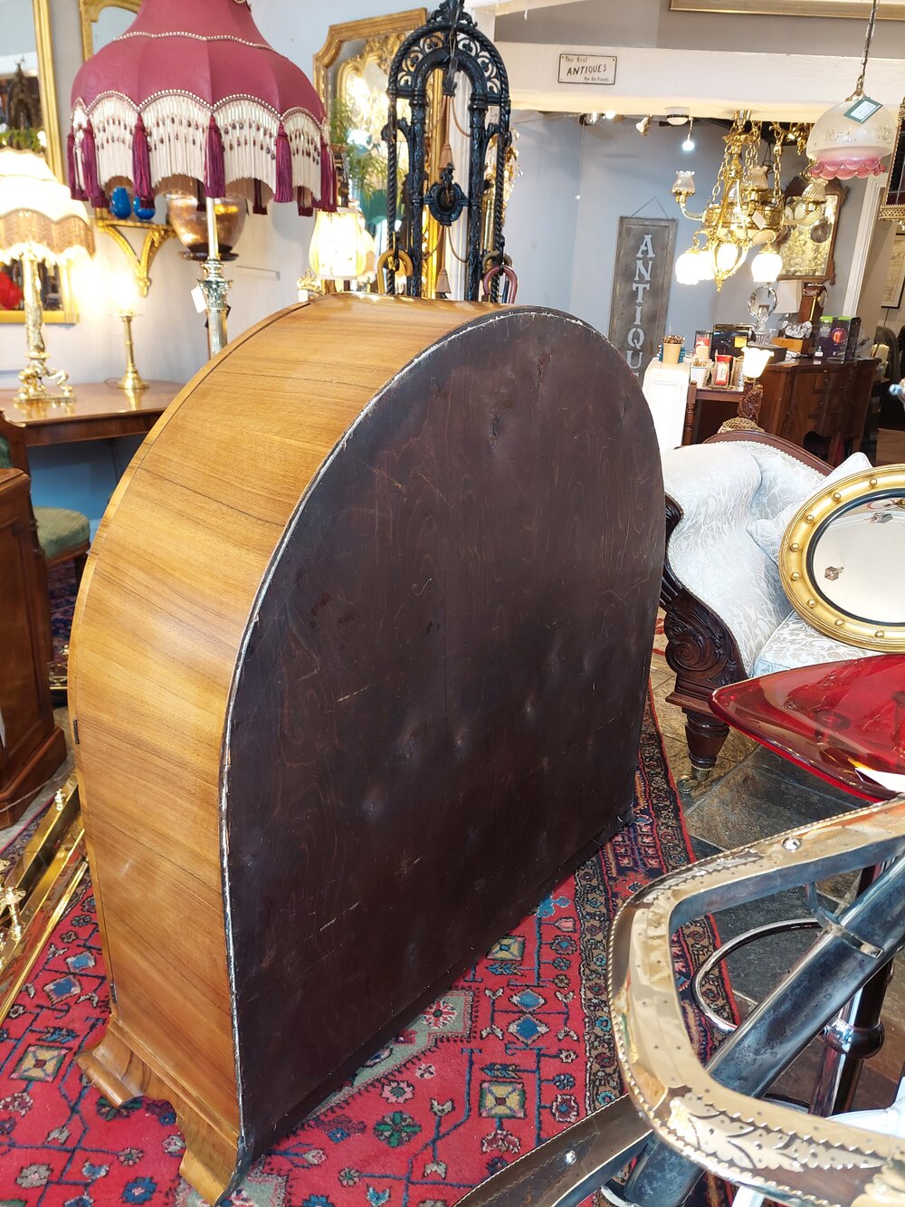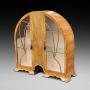 Good Walnut Art Deco Display Cabinet - of wheel form, lined interior containing two glass shelves on plinth base - 32"w x 14"d x 28"hDateArt Deco