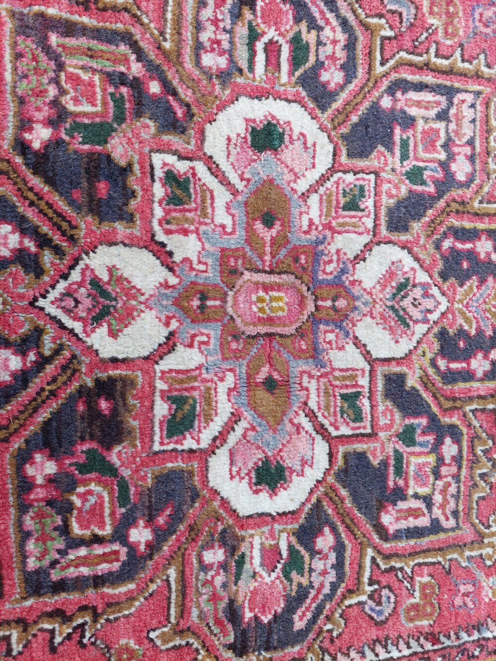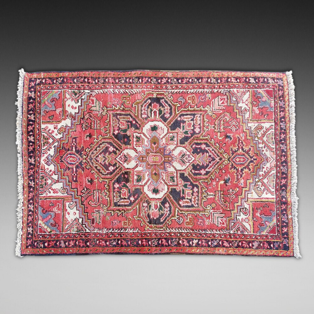 North West Persian Heriz rug, hand woven woolen carpet having a central medallion on a red ground - 58"w x 39"dDateRetro
