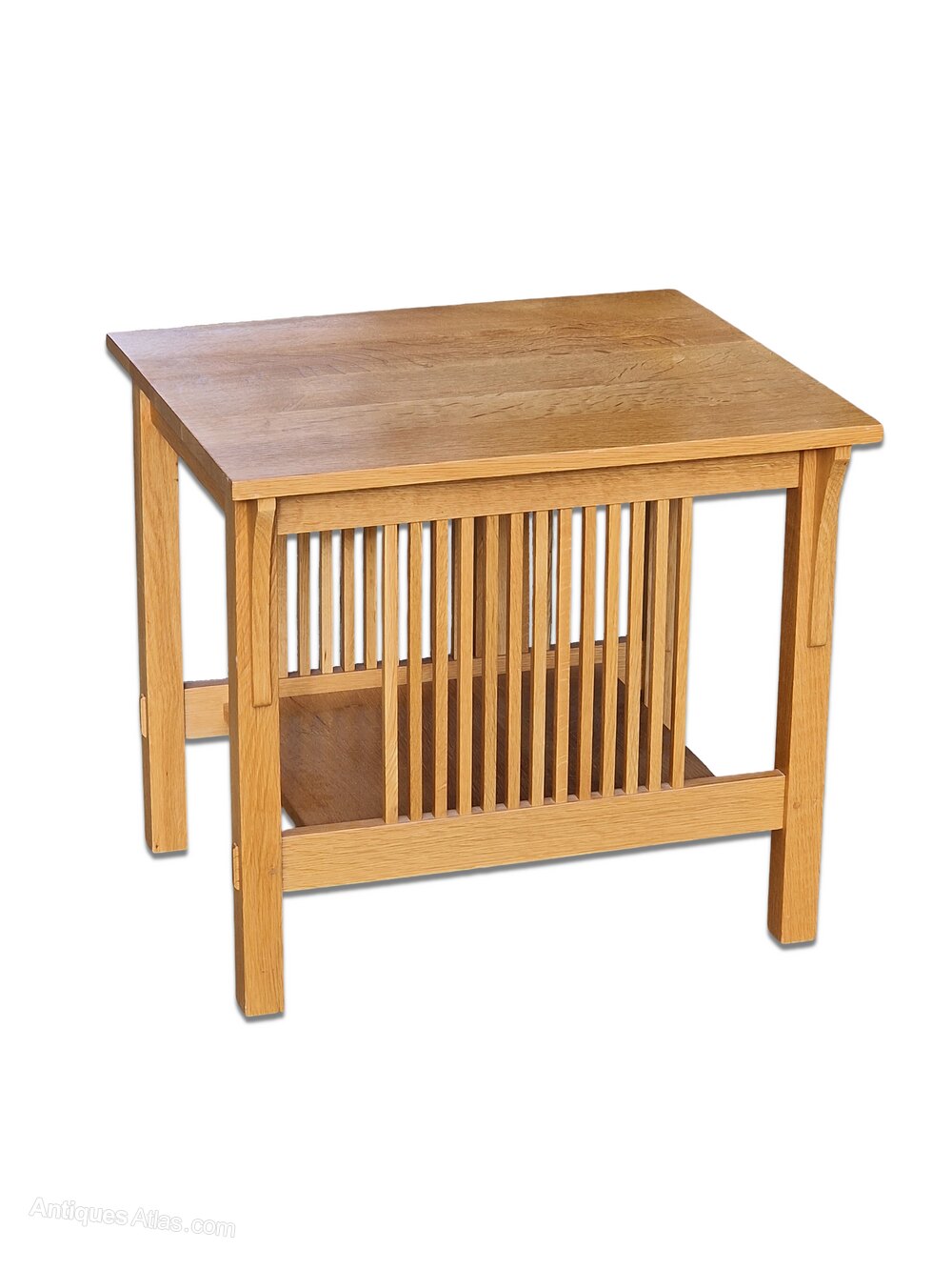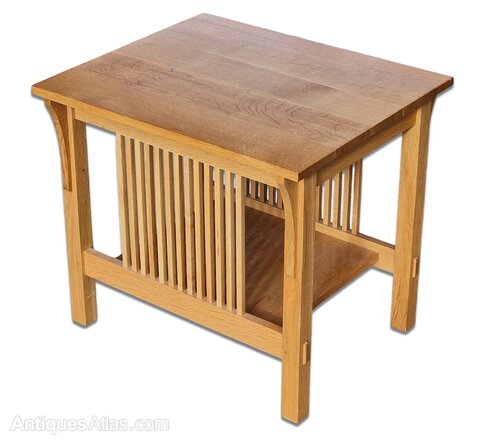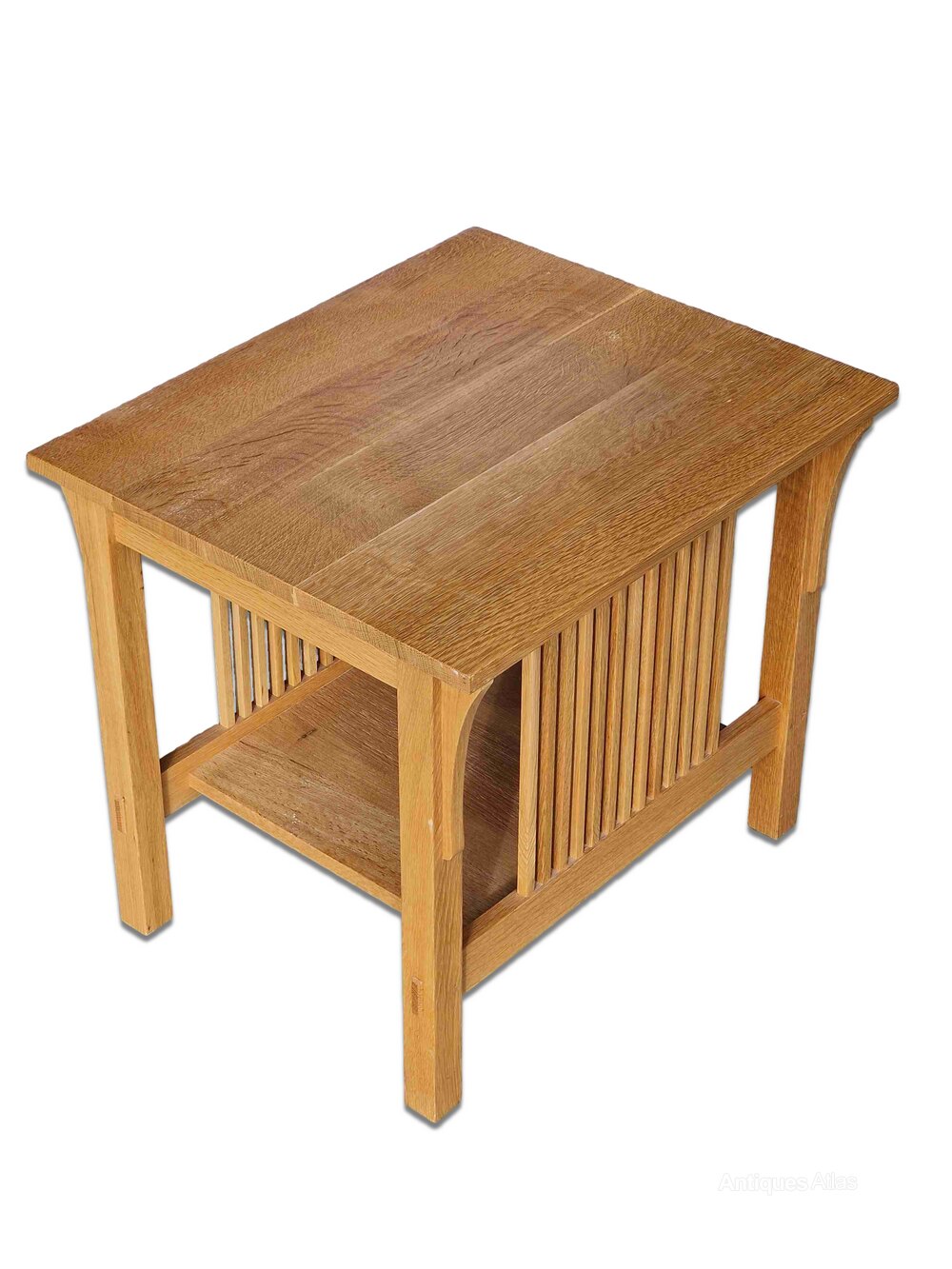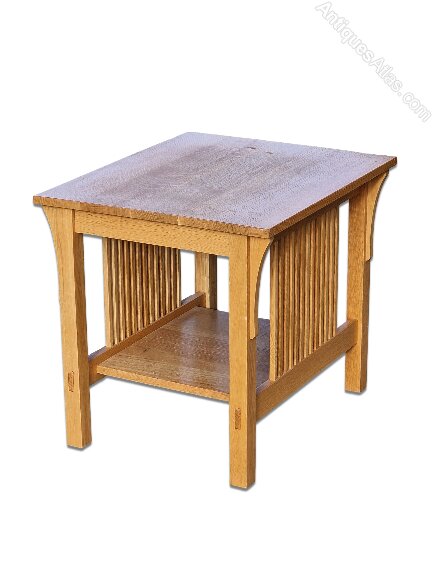 An Arts & Crafts Mission, occasional end / lamp / side table designed by L. & J.G. Stickley c.1910. Craftsman made in solid, well figured quarter sawn oak by Stickley Furniture (USA) in the late C.20th. Labels and branding present.Offered in excellent condition. The table will be cleaned back and re-waxed.