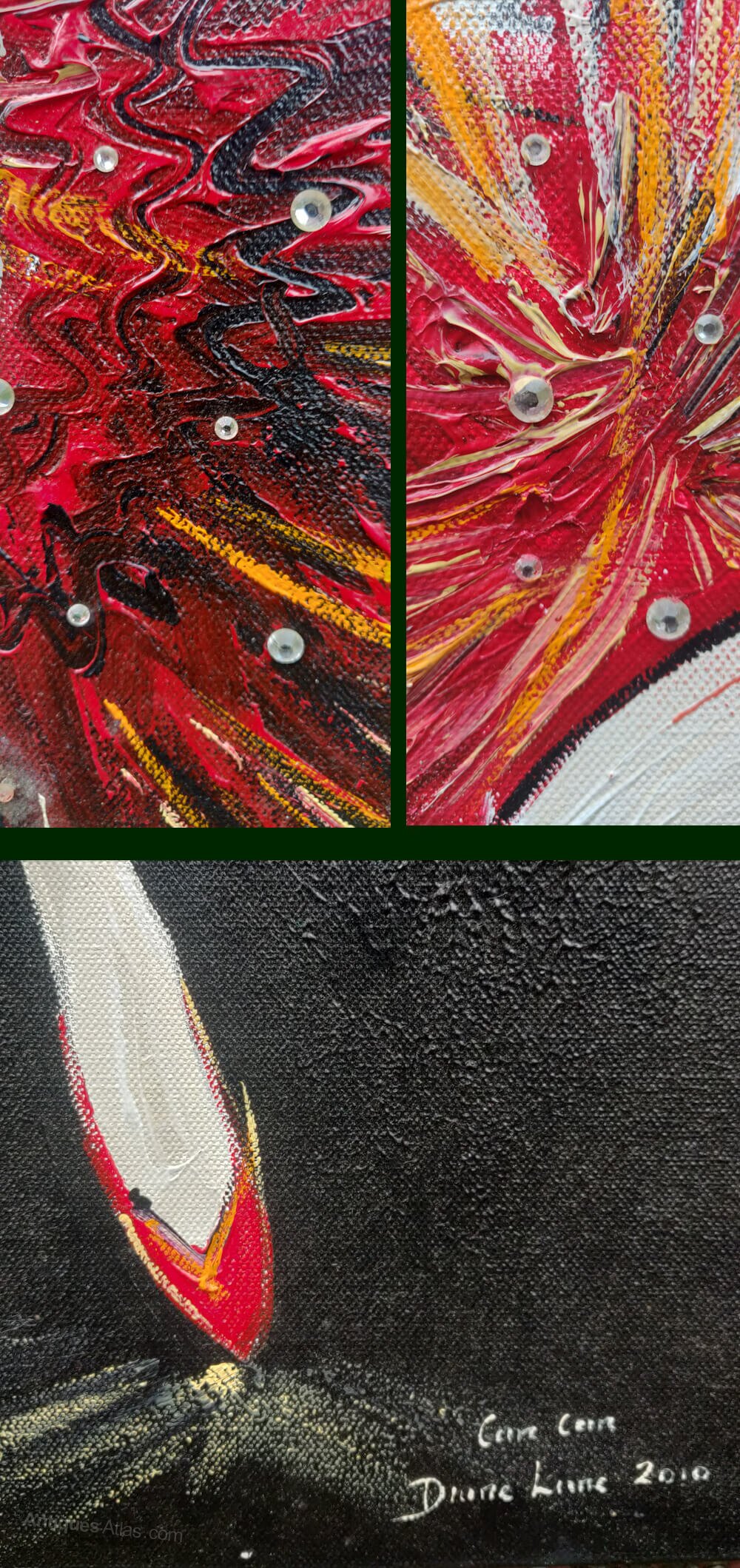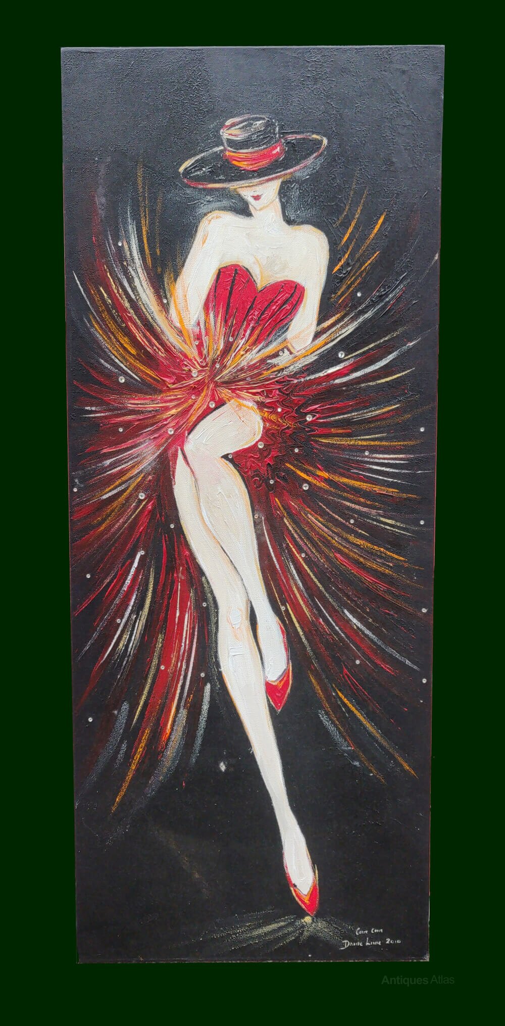 Description: A dazzling and dynamic original painting by Manchester artist Diane Lane, Can Can captures the glamour and movement of a dancer in full motion.
