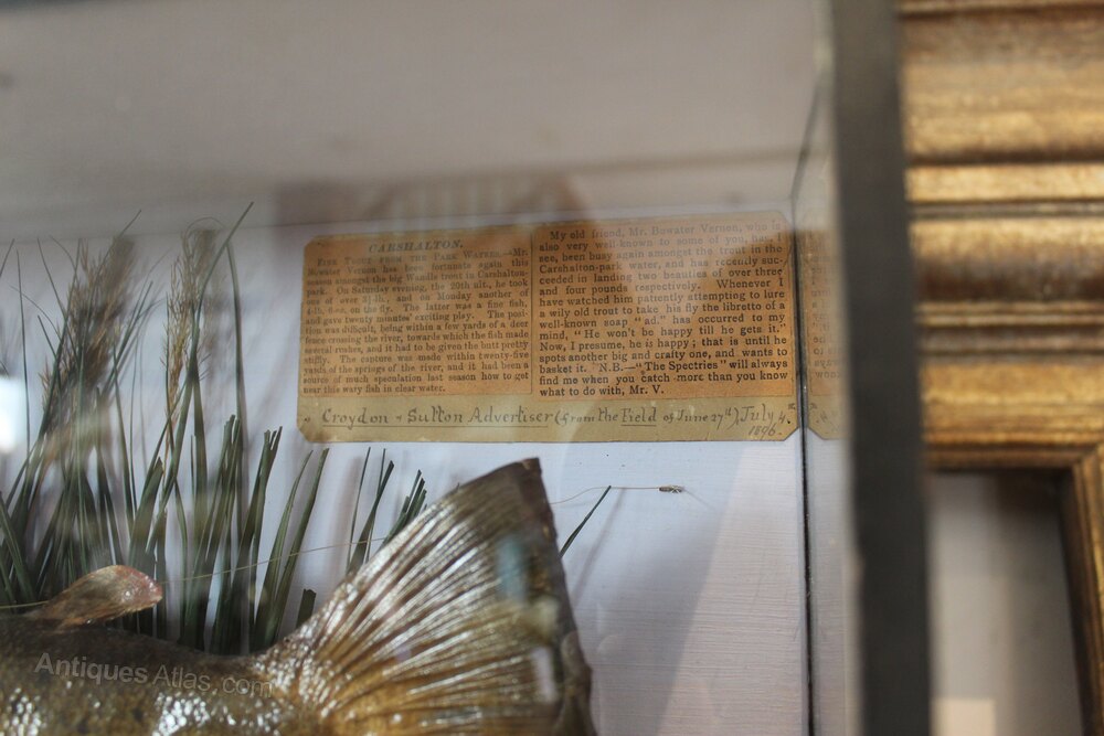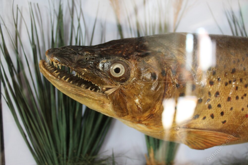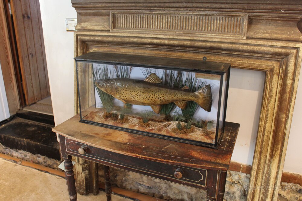 Here we have a rare Victorian taxidermy trout by Frederick William Anstiss c1894. The trout is in a beautiful naturalistic setting and of course is of the highest quality being by Anstiss. There is a newspaper cutting to the inside and a label for Anstiss. On the rear there is a label for The Flyfishers Club and it was suggested that this was in the Fly Fishers Club in Mayfair London by the seller which makes sense. A super example that even has the fly the fish was caught on in its mouth. Condition is excellent. The dimensions are approx 68 cm wide 15 cm deep 32 cm high.Buy from a trusted LAPADA dealer