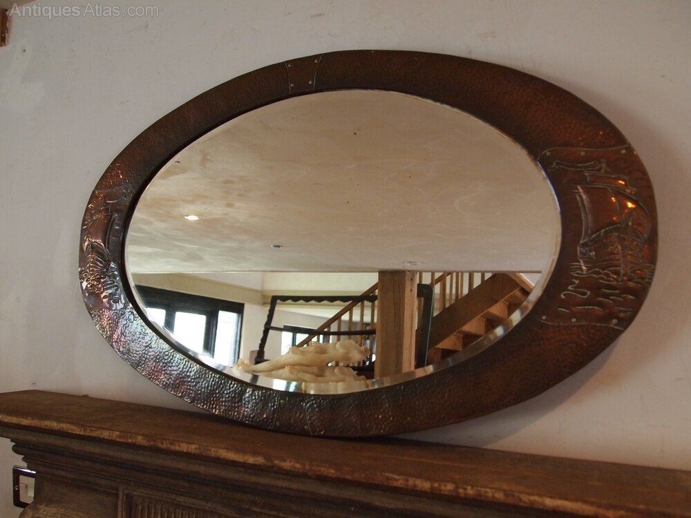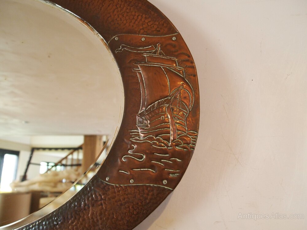 Mirror Arts and Crafts Copper Newlyn attr c1900
