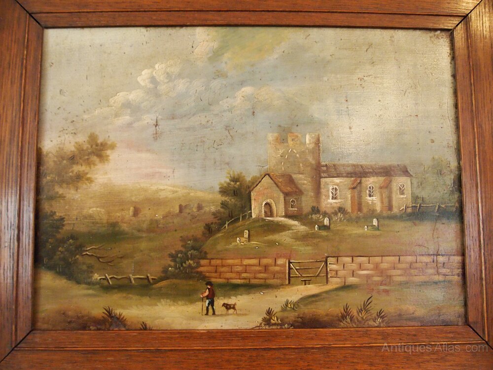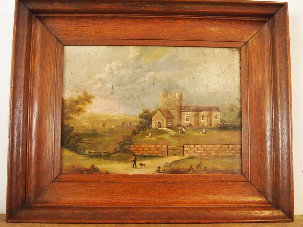 Here we have a wonderful naive oil painting on board c1850. As you can see this is an excellent example of its genre. It is a beautiful pastoral scene with a lone figure and his best friend. The condition is excellent and ready to hang. The dimensions are approx frame 40 cm x 50 cm. Painting 26 cm x 36 cm.Buy from a trusted LAPADA dealer