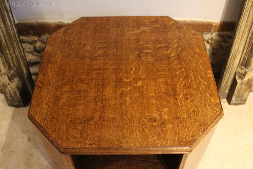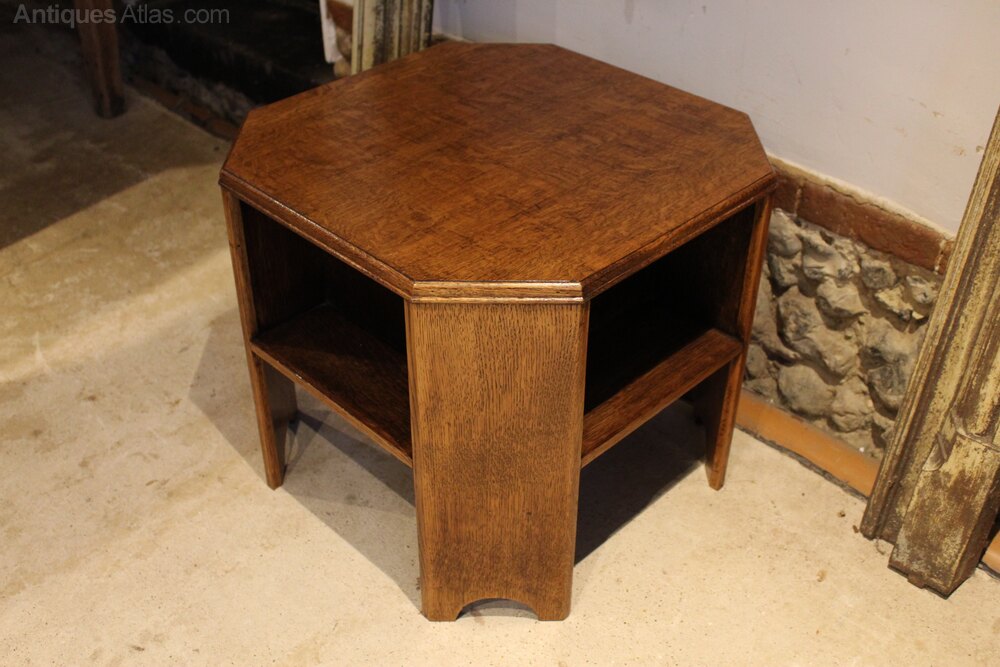 Here we have a simply perfect Heals of London Arts and Crafts Quarter sawn Oak coffee table c1920. As you can see the table has great colour and patina. There is an irregular octagonal top made from beautiful quarter sawn Oak showing stunning medullary rays within the grain. There is a delicate moulded edge giving simple decoration. The table has very useful internal shelves and sits on slightly arched legs. There is Heals label underneath and the table is in excellent retail condition ready for your home. The dimensions arepprox 54 cm high 60 cm wide 60 cm deep.Buy from a trusted LAPADA dealer