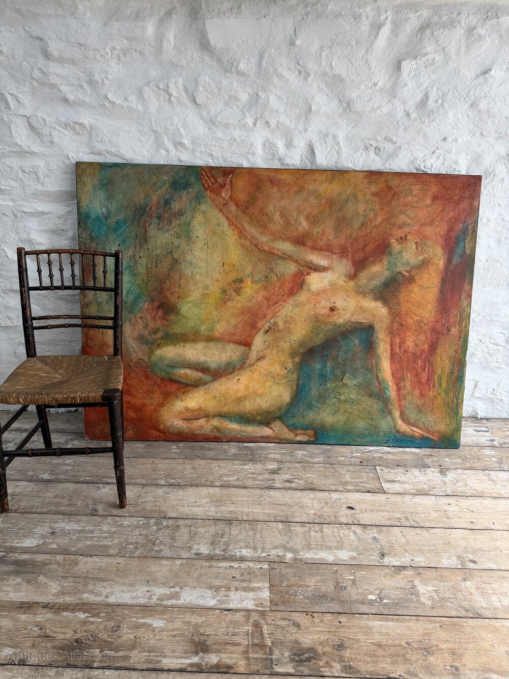 Large modern abstract painting of a nude by French artist.Welcome to Coastal Antiques...
