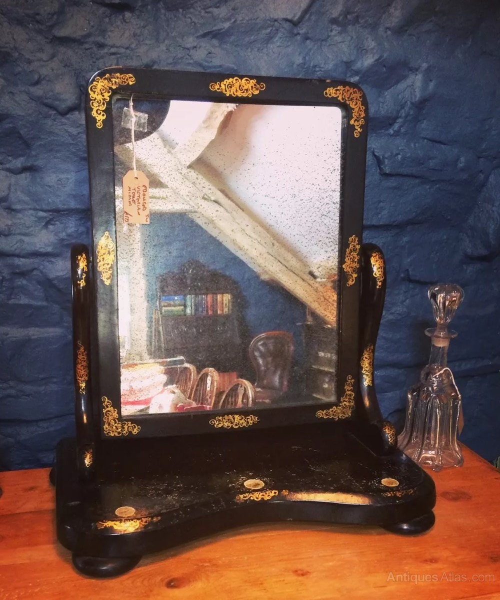 Stunning quality Ebonised toilet / dressing mirror with great distressed original mirror. Slight wear on base as you can see on photo.Available for viewing at Coastal Vintage in Aberystwyth.