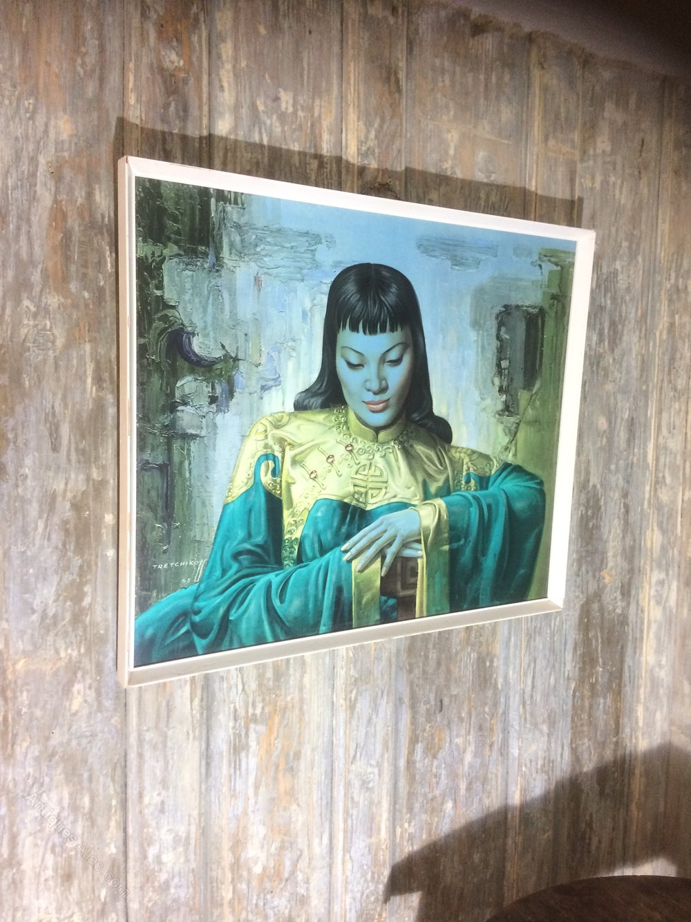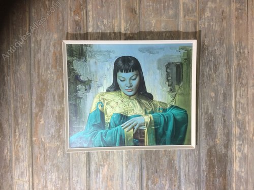 Very rare!! 'Lady from Orient' by Vladimir Tretchikoff. This is an original 1950s / 1960s print in original frame.This study of an oriental beauty strikingly illustrates the artist's unconventional use of colour. Because he spent so many years in the East, where colour reigns supreme, the artist became attracted to colour designs. He has found that people like to have colour in their lives, especially women, who are often moved to tears by colour alone. There is no secret in his colour application - he uses pure colours to combine on the canvas rather than mixing them on the palette beforehand.DateMid 20th Century