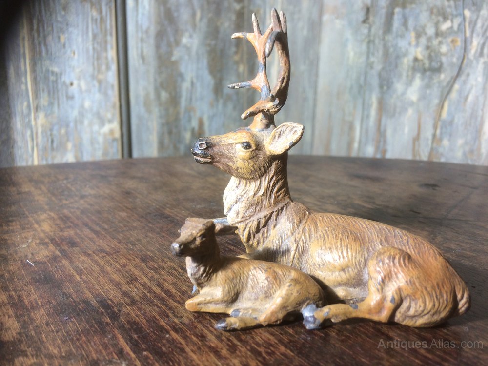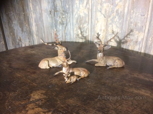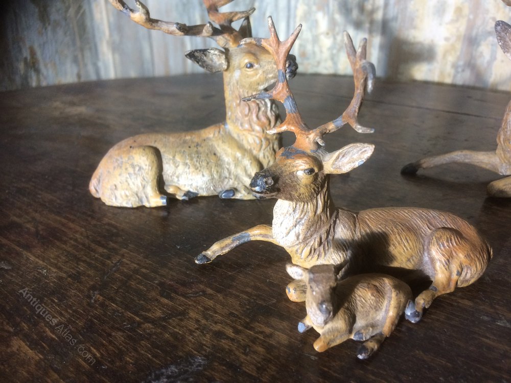This attractive trio of models of stags dates from the second half of the nineteenth century. It is made from hollow-cast metal, possibly some type of spelter, and has been cold painted. There are no maker's marks. The piece is of nice quality.DateEarly 20th Century