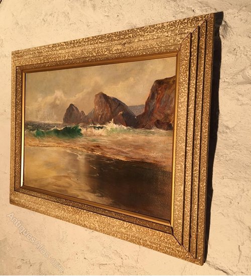 Oil painting on board of Cornish seascape in original Art Deco frameDateArt Deco