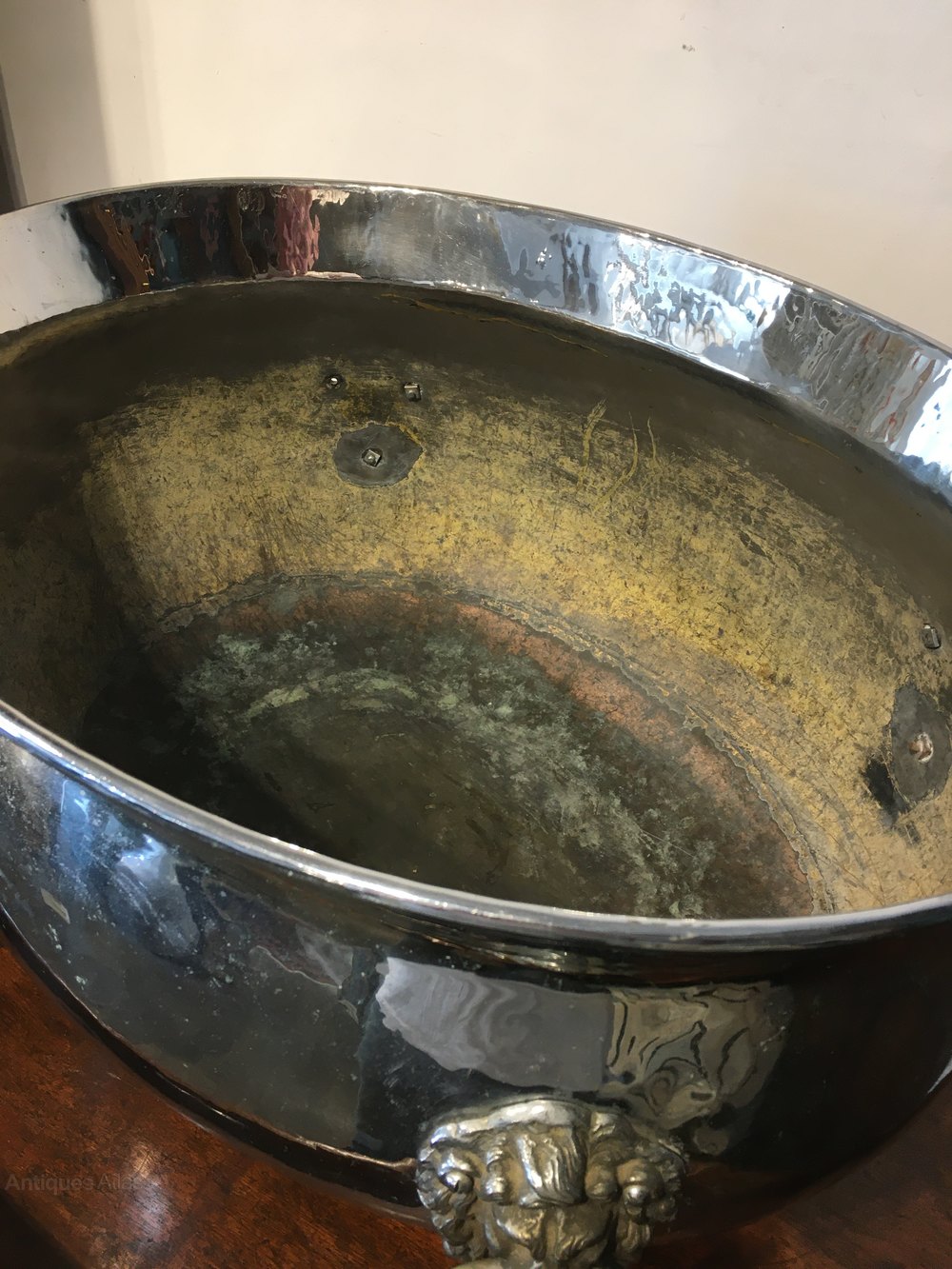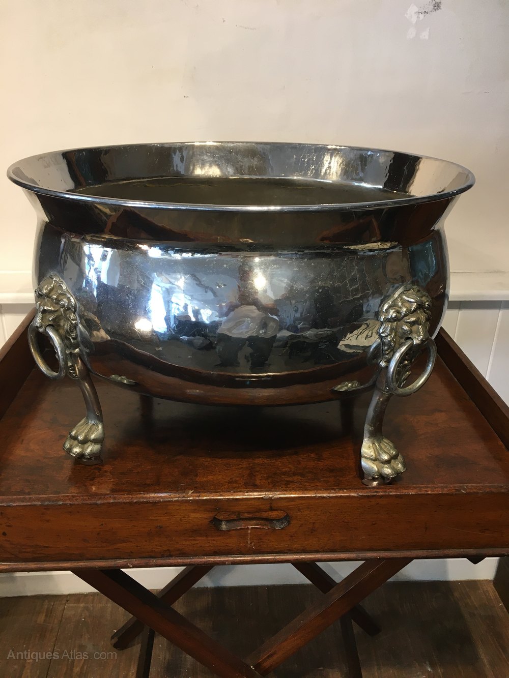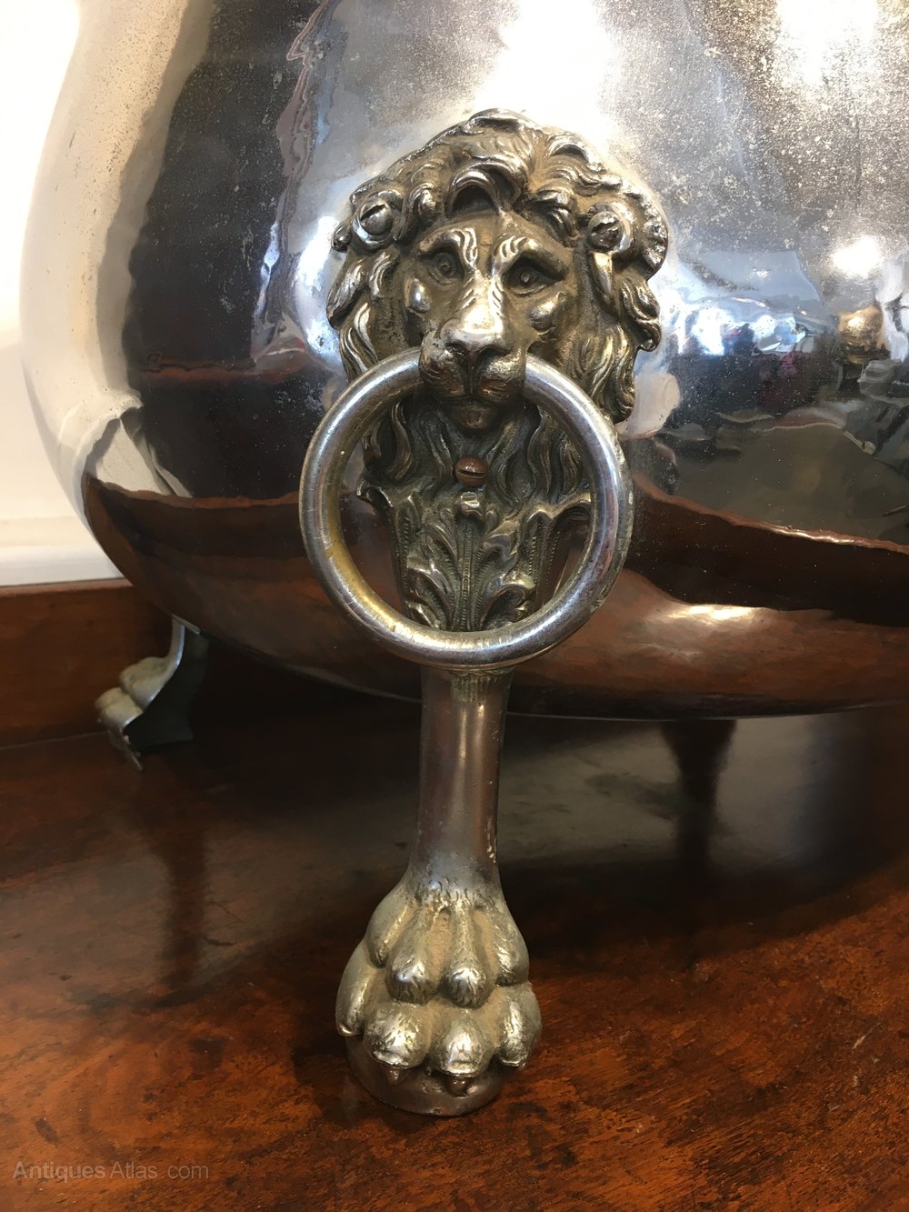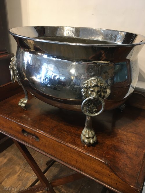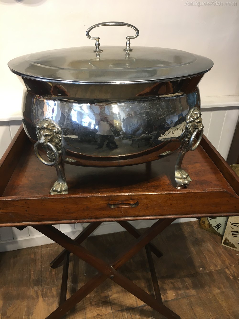 Stunning silver plate 19th century champagne ice bucket/ log bucketQuality lion feet with original lid.