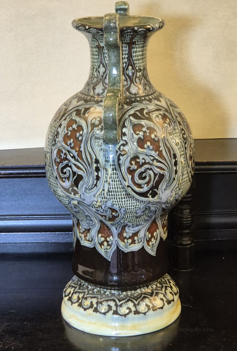 Large (14 1/4" 360mm) rare Utrecht pottery majolica glaze vase, marked and signed to base Holland 487More pictures available on request.