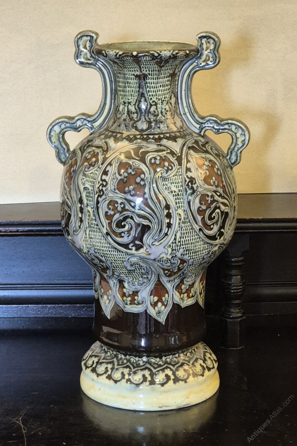 Large art nouveau Utrecht pottery twin handle vase
