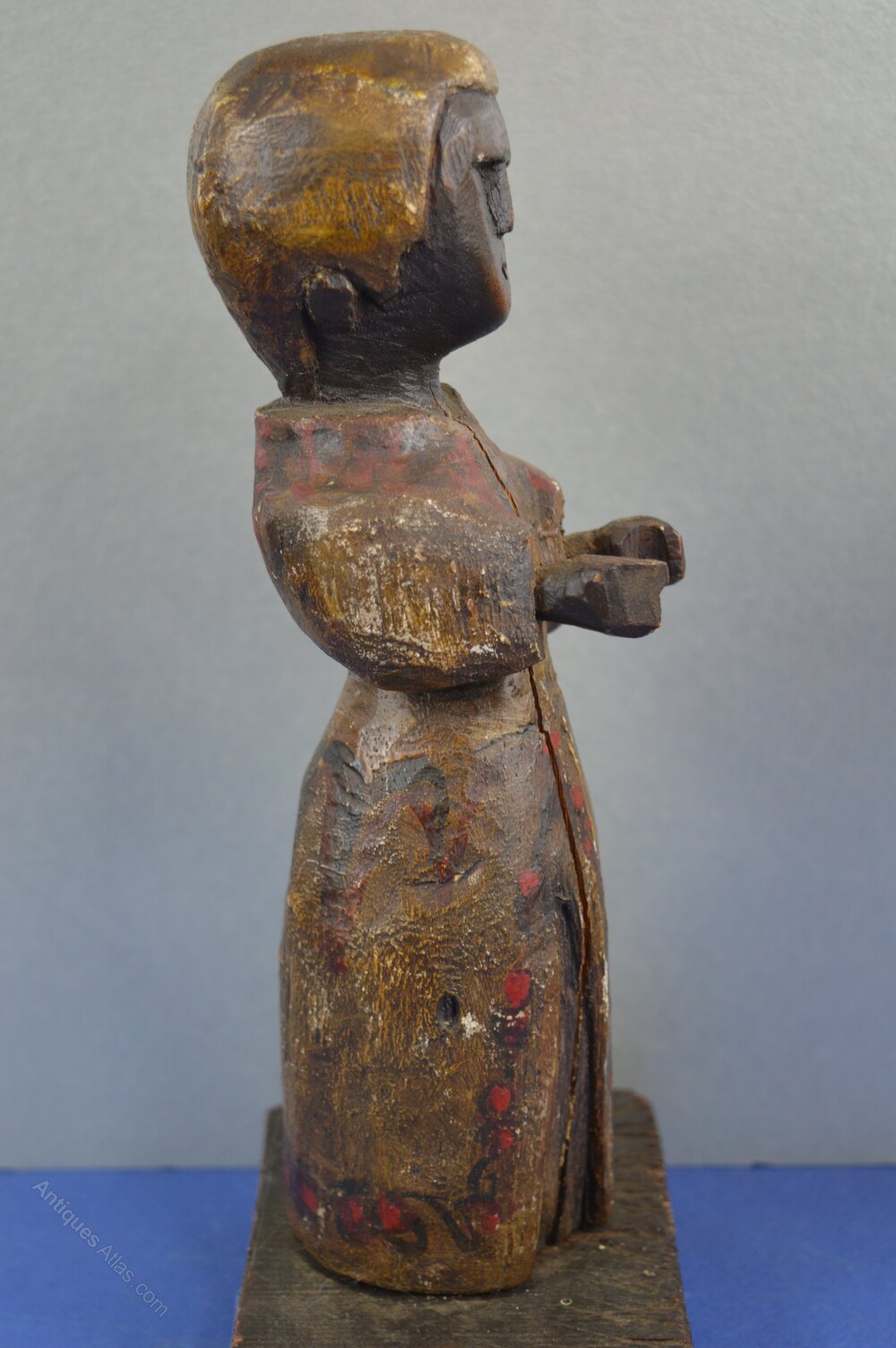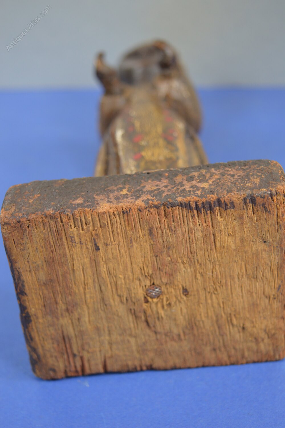 Beautiful Indo-Portuguese carved wood and polychrome religious Statue,c1740. This is an early example most probably from Goa and depicting a Saint. It is a remarkable survivor in good original antique condition, structurally sound with a central crack, but this is only on the surface and is clearly historical and part of the ageing process. Exactly as you would expect from a piece of this age. The painted decoration is still strong and the wood has taken on great colour / patina after hundreds of years of handling and use. Please refer to the detailed photographs and feel free to contact me if you would like to view the item or have any questions.Price includes FREE UK postage. Please contact me regarding International shipping.