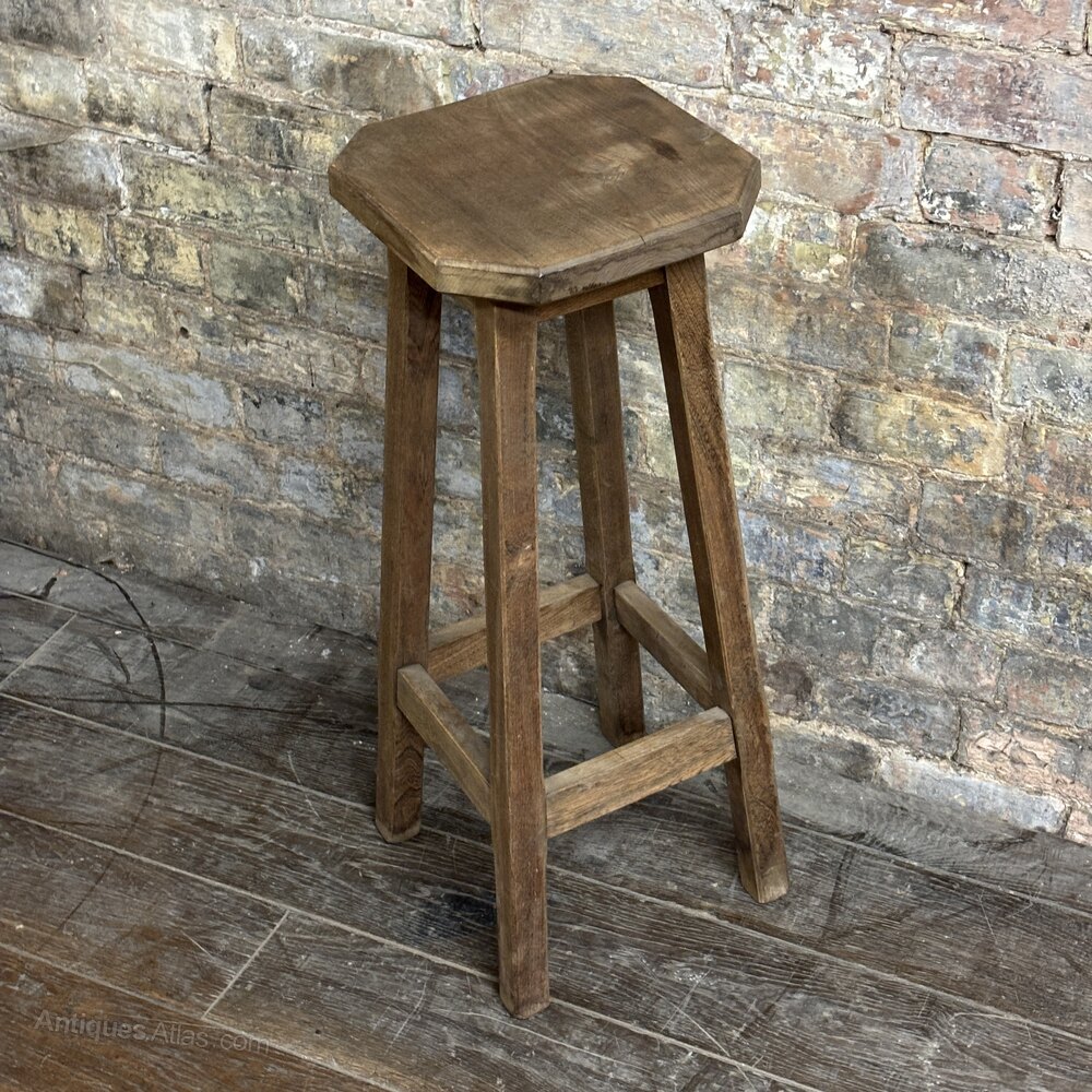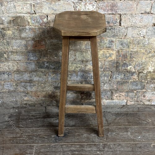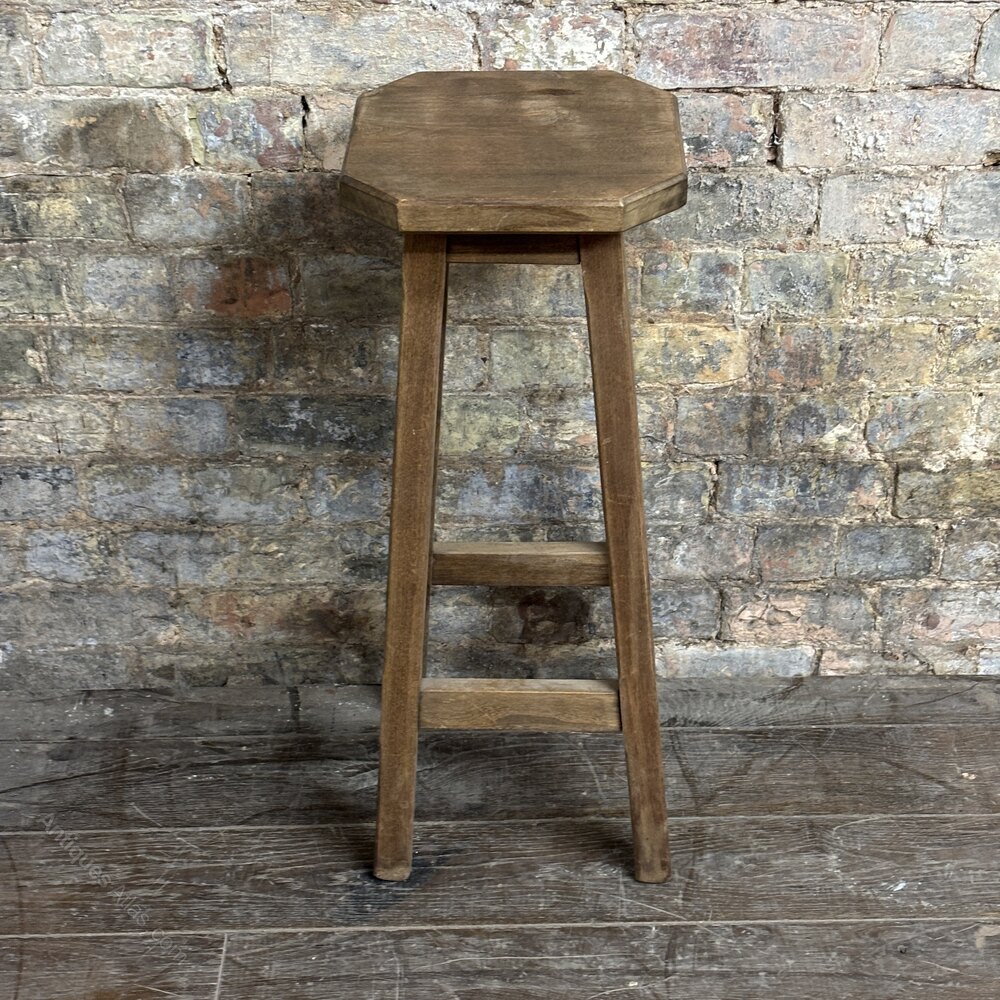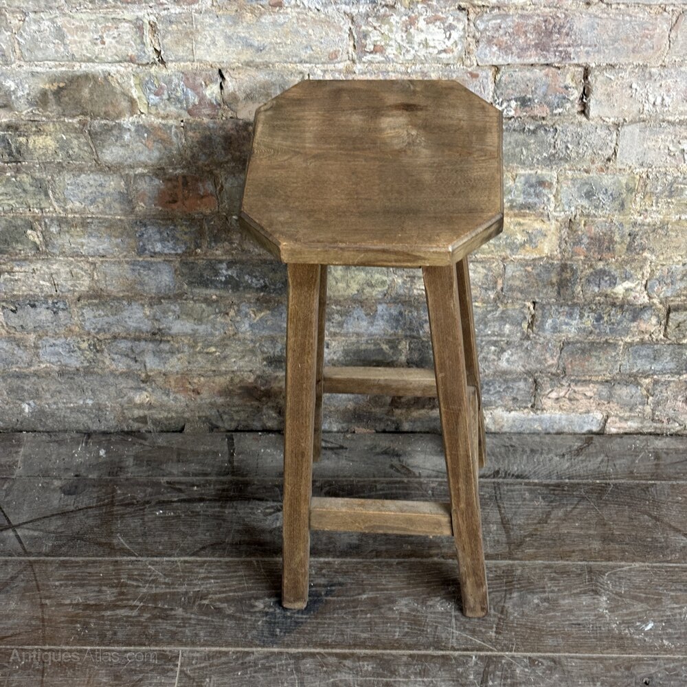 A charming and practical workshop-made stool dating from the 1930s. The stool features a distinctive octagonal seat set on four straight, tapering legs joined by simple stretchers. Hand-crafted in solid oak, it reflects the simplified utilitarian style typical of the interwar years.The construction and patina of the oak give the piece great character, making it both a functional seat and a decorative addition to any space.