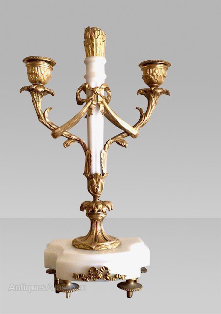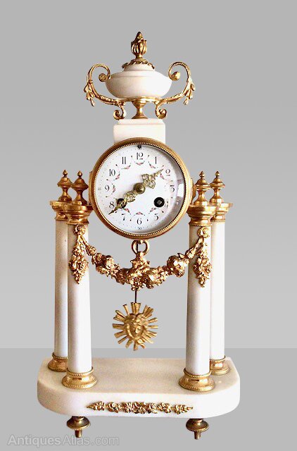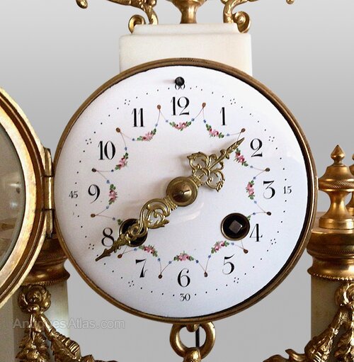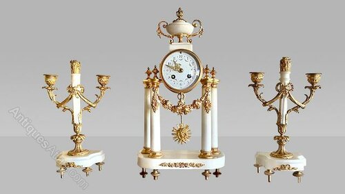 Antique white marble and ormolu French clock set